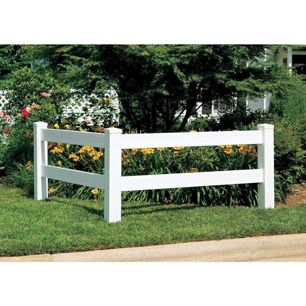 The Veranda Vinyl Ranch Rail with white finish will add style to your yard and comes ready to be installed. Constructed of durable vinyl, this rail offers low-maintenance upkeep that doesn’t require painting or staining. For more longevity, it resists warping, splintering, rotting or yellowing. Use the Veranda Rail to build a 2-rail or 3-rail fence. Add this charming update to your outdoor space.
