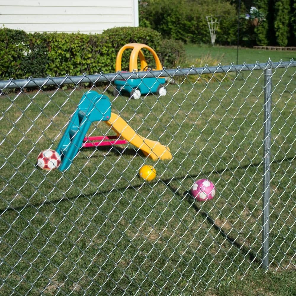 - 2-3/8 in. woven diamond mesh fence opening provides visibility and security.