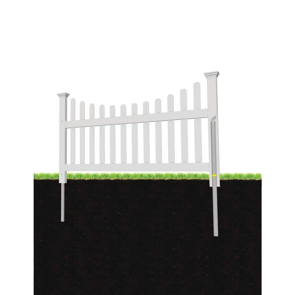 Forget digging holes or pouring concrete with this innovative permanent fence system. Made with premium vinyl materials, this stylish swooped picket fence will not rust, rot or deteriorate from the elements. To install, you drive a steel pipe anchor (included) into the ground and then sleeve your vinyl post over top. Purchase several units to create your desired fence length. This means you don’t need to dig holes, pour concrete or tear up your yard to install it.