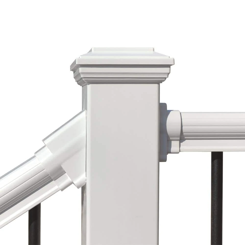 This White Premium Composite Post Sleeve is designed for use with the White & Black Premium Composite Fence or Stair Rails (LBP9225 & LBP9226). The set includes the post, trim ring, and decorative post cap. The color is bright white. 4″x4″ treated wood post should be mounted inside the post sleeve.