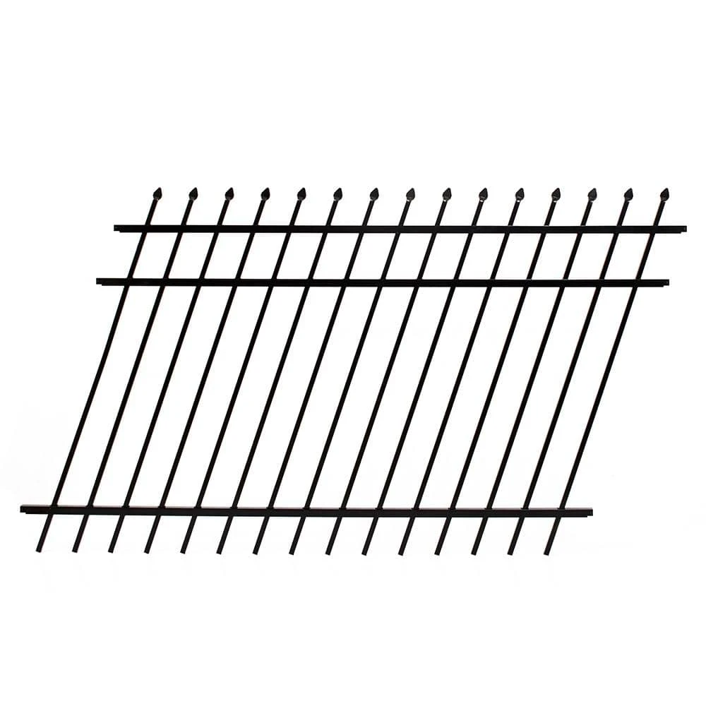 Athens residential aluminum fencing from Fortress is versatile, affordable and durable. This Athens 71 in. W x 48 in. H Black Fence Panel is the perfect addition to any backyard creating a safe boundary for children and pets. The rackable panel design makes this aluminum fence panel application easily adjustable for installation and attractive finish on a sloping terrain. After installing this DIY friendly fence system, you can have peace of mind knowing our power coated aluminum finish ensures rust-free panels and is backed by our limited lifetime warranty. This bracket-less fastening system is made to be used with our compatible components (sold separately) which include pre-punched post, gates and post accessories.