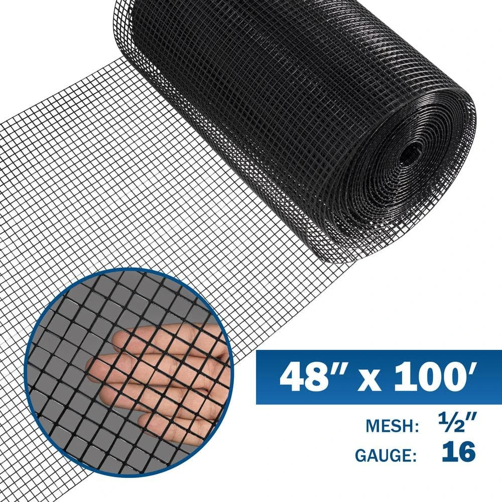 The Fencer Wire black vinyl coated welded wire can be used for a variety of outdoor applications including, field perimeter, barrier reinforcement, garden security, and chimney protection. The welded mesh design prevent damage and will not loosen when cutting. The PVC coating offers a decorative and polished look to most yards and natural surroundings, also gives it a long and reliable lifespan.