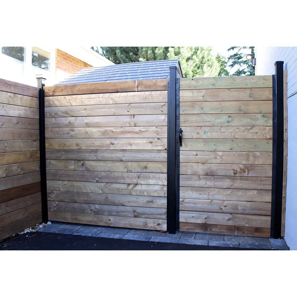 Now you can build your own custom gate right on site with the Sipfence Gate Kit. Comes with 6 corner brackes, 2 self-closing Hinges, a Thumb Latch and Rubber Straps to emulate the look of the Slipfence Stringers on the rest of your fence. Just add wood WOOD NOT INCLUDED.