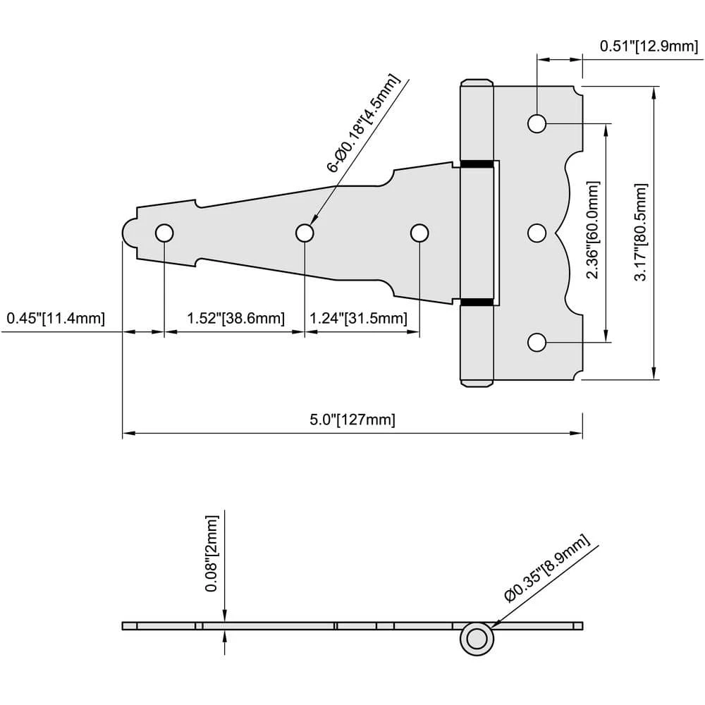 Easily install these Everbilt Heavy Duty Decorative Tee Hinges. They measure 4 in. x 3-2/5 in. and are best used on doors, gates, sheds and tool boxes. The bearing design eliminates metal to metal contact.