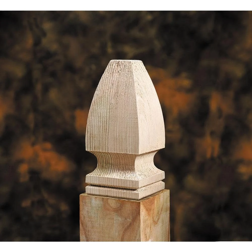 Add a stylish accent to wood posts or poles with these gothic-shaped wooden finials. The screws are already in place, so you can quickly install them on decks, porches or flagpoles. Paint or stain them to match posts, or leave them to weather naturally. Package contains six finials.