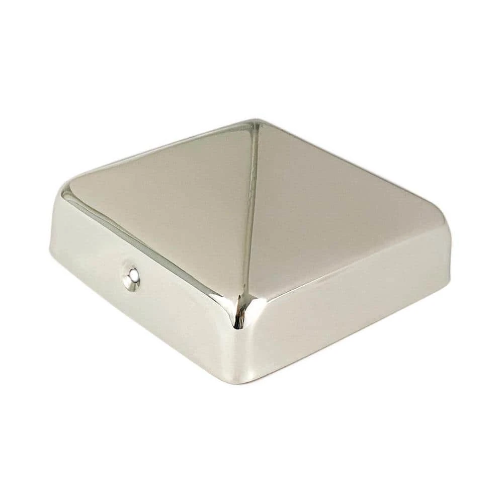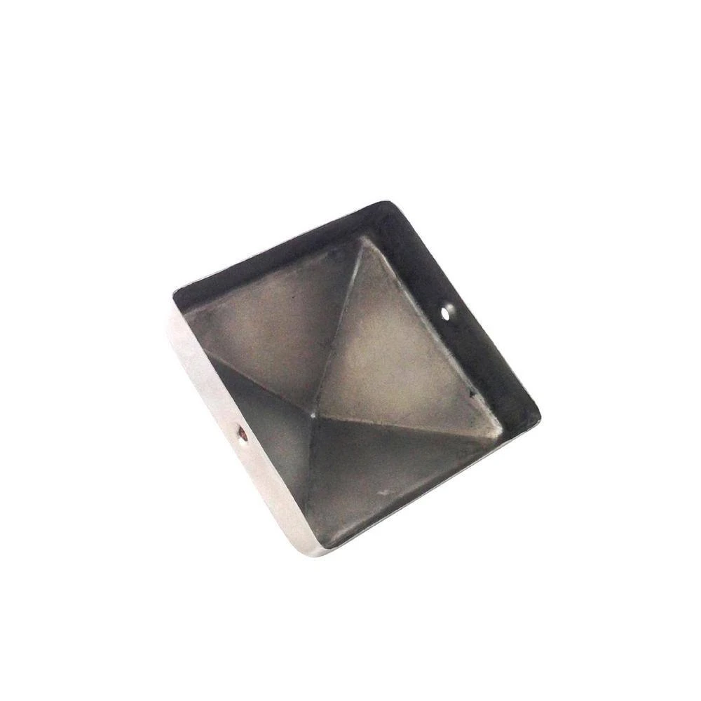 Give your fence the protection it deserves with 4 in. x 4 in. Slip Over Stainless Steel Post Caps. Fitting atop 4×4 Rough Cut fence posts measuring a true 4 in., the stylish stainless pyramid prolongs the life of any fence post by guarding against rain and the elements. Our stainless post caps have a 3/4 in. lip with mounting holes. The 1-piece stamped design gives you a finished look from all angles. Since these are 100% stainless they will last a lifetime. All 4×4 stainless steel post caps come with 2 screws for mounting.