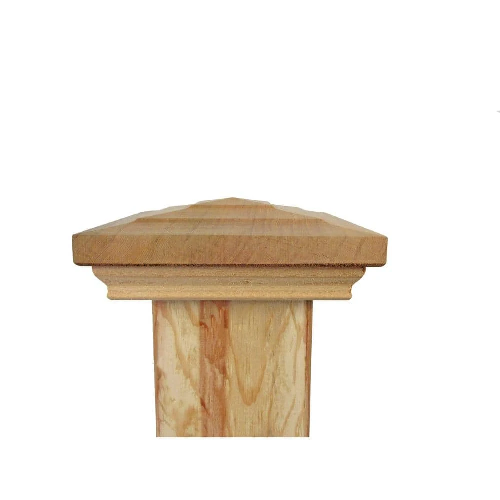 - Note: Due to differences in lumber, each post cap may be slightly different in appearance, such as, the number and placement of knots, slight differences in surface roughness, also the post cap may have, or may develop small cracks over time. Slight differences in product dimensions may occur during the manufacturing process, due to the nature of the wood, which can gently swell or shrink.