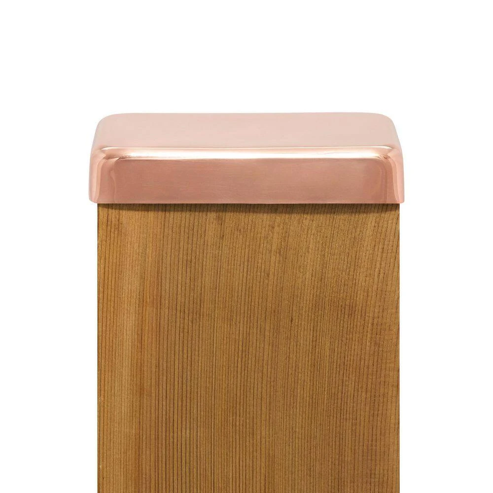 Protect your fence or deck investment with Protectyte’s 4 in. x 6 in. Flat Top Slip Over 100% Copper Post Caps. Fitting on top of a 4×6 fence post measuring 3-1/2 in. x 5-1/2 in., the flat copper post cap extends the life of any fence post by guarding the end-grain against rain and the elements. Protectyte copper post caps have a 3/4 in. lip with mounting holes. The 1-piece stamped design gives you a finished look from all angles. As Protectyte only uses 100% copper, the cap will patina to a green color over time. If you want them to stay shiny, they can be coated with a clear lacquer metal outdoor spray. All Protectyte copper post caps come with 2 matching screws for mounting.