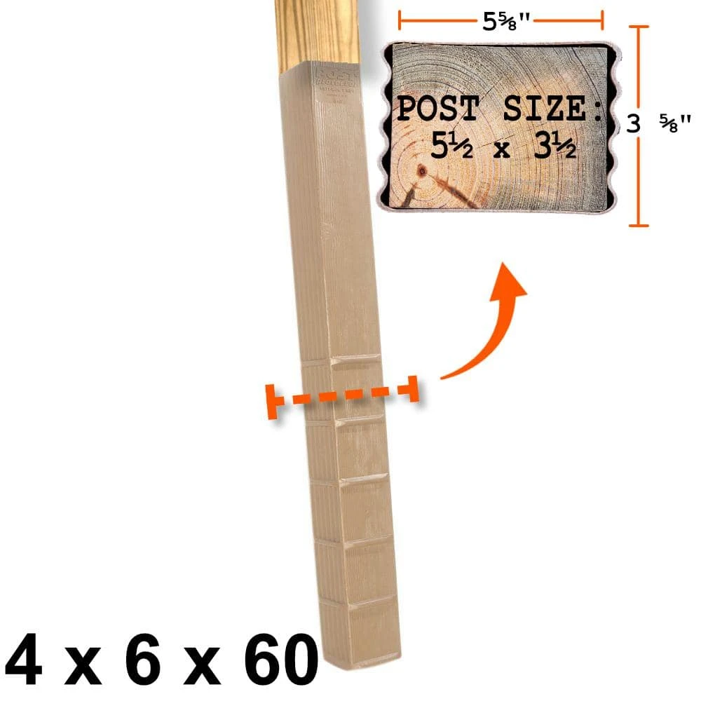 - Fits the typical 4 in. x 6 in. post with the actual dimensions of 3-½ in. x 5-½ in.
