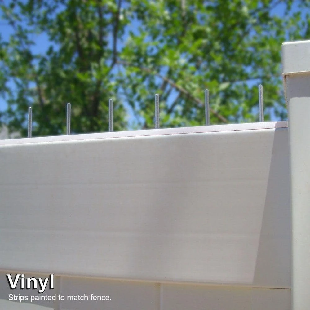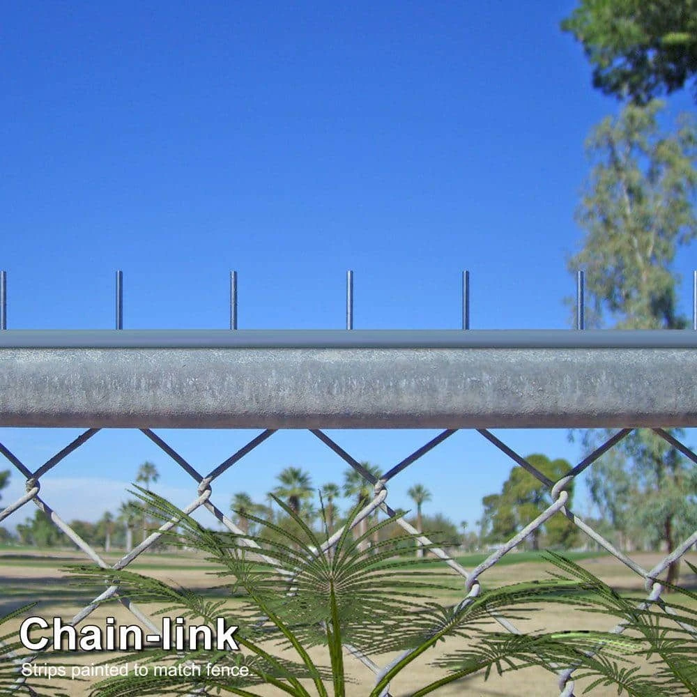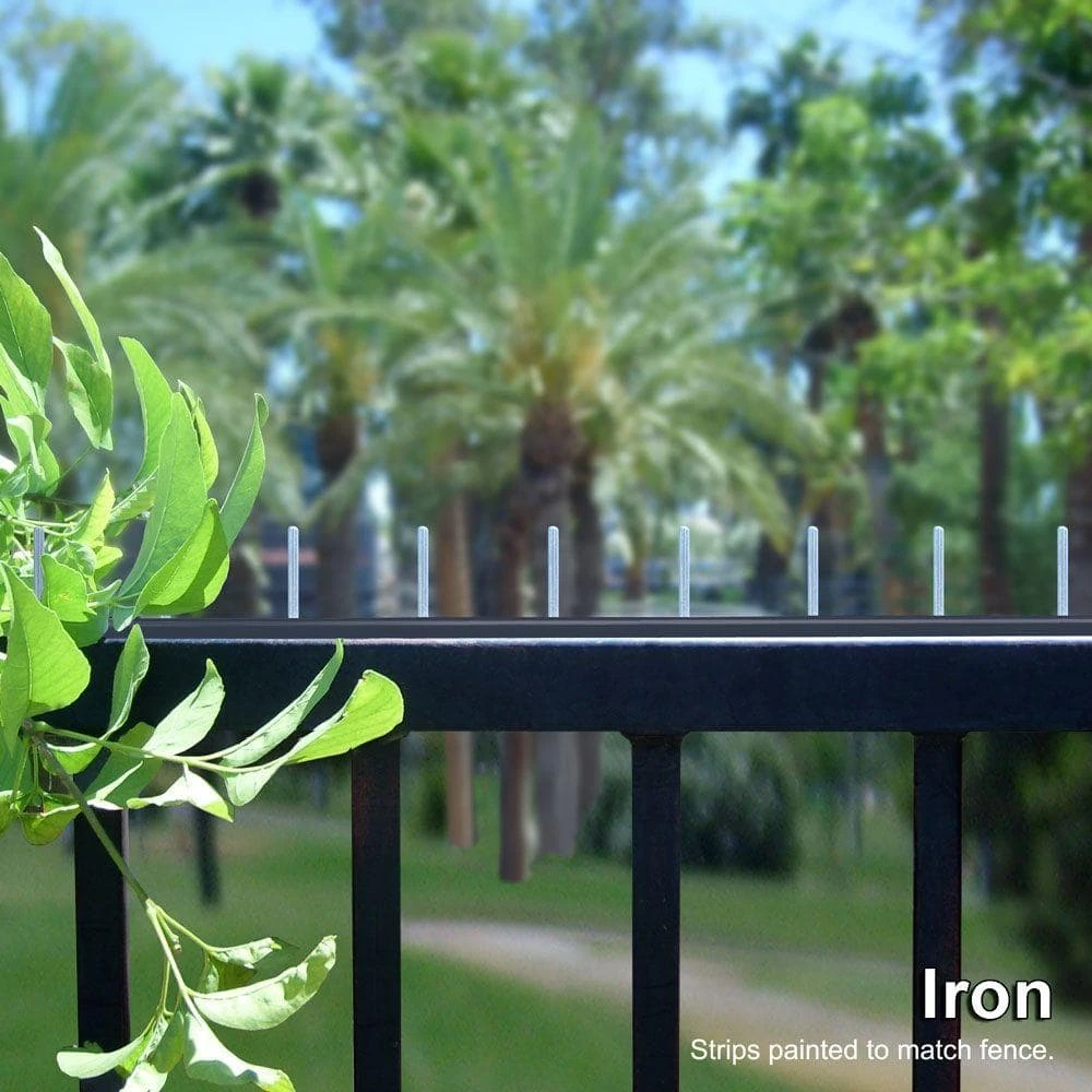 Stop climbing with MAXguard Fence and Wall Spike Strips that guard against trespassers and nuisance animals from climbing over fences or walls by providing a strong visual and physical deterrent using a single row of 1-1/2 in. (3.9 cm) high blunt tip metal spikes. Easily installed onto the tops of fences or walls made of brick, block, stone, iron, chain-link, wood or vinyl, all without sacrificing aesthetics. The spike strips are contoured to fit onto most walls or fences with a flat top 1-in. (2.54 cm) or more in width, or any chain-link fence with a 1-3/8 in. (3.5 cm) or 1-5/8 in. (4.2 cm) horizontal top-rail. Fence and Wall Spike Strips are U.V. and impact resistant, withstand extreme temperatures, and can be painted to match any decor. While sharp aggressive products such as barbed and razor wire are not typically allowed by homeowners associations and most municipal laws, Fence and Wall Spike Strips are specifically designed to comply with such rules, meaning no hassle for property owners but plenty of hassle for trespassers that may be tempted to climb over walls or fences around your yard. Installation is as easy as cutting the spike strip to the desired length using any fine-toothed saw, applying a bead of the included industrial-strength adhesive along the entire length of the backside of the strip, and then placing the strip into final position. 24 hours later the strips are virtually impossible to remove.