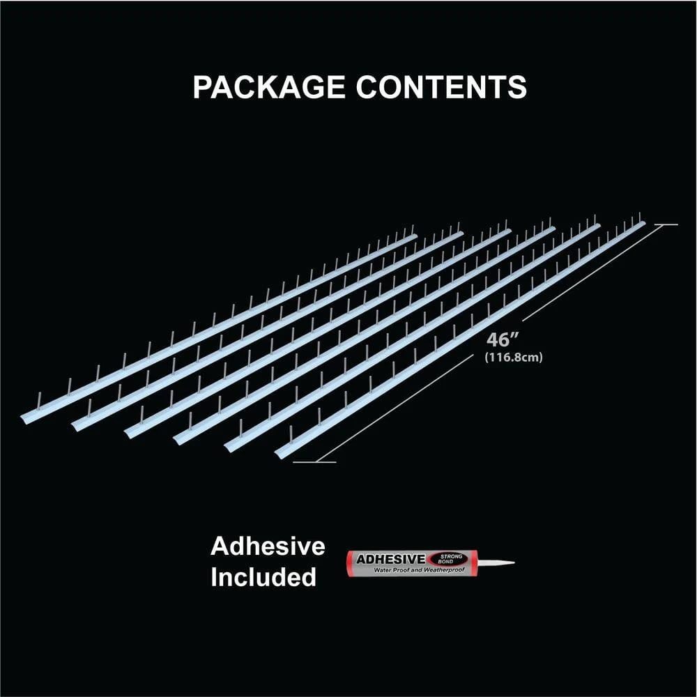 - Kit contains six 46 in. (116.84 cm) or 23 ft. (7.01 m) total, rigid PVC strips with a single row of 1-1/2 in. (3.9 cm) high, rust-resistant, blunt tip, metal spikes