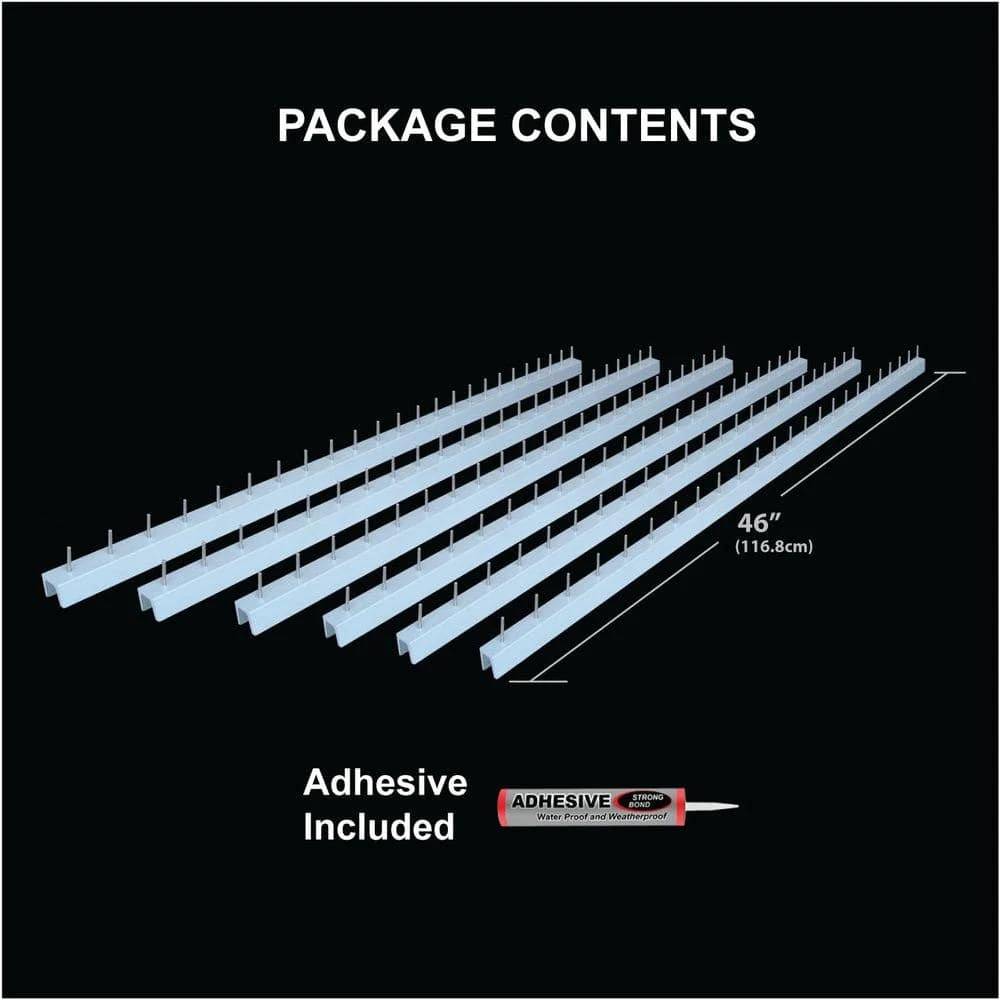 - Kit contains six 46 in. (116.84 cm) or 23 ft. (7.01 m) total, rigid PVC strips with a single row of 1-1/2 in. (3.9 cm) high, rust-resistant, blunt tip, metal spikes