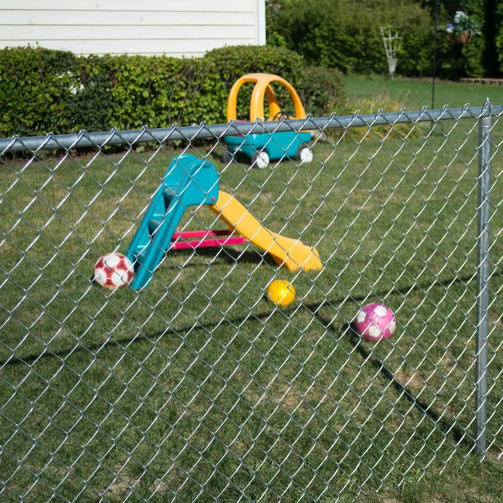 - 2-3/8 in. woven diamond mesh fence opening provides visibility and security