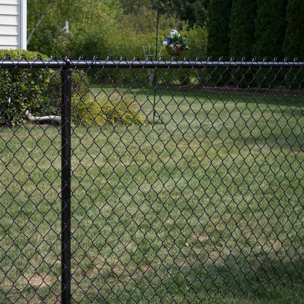 Everbilt Black Steel Chain Link Fabric is a prime component when building a protective barrier around your yard, home, or business. The chain link mesh fabric can also be used to construct dog runs and kennels, or to create a secure perimeter around playgrounds and parks. The 4 ft. tall wire netting is made of 9-Gauge steel that has a black vinyl coating to help resist weathering and rust, and increase longevity. The black coating on the Everbilt Chain Link Fence Fabric is helps to eliminate sharp surfaces and burrs that could cut or scrape a person or pet. The top and bottom ends are knuckled (bent over) to help eliminate sharp edges. The 50 ft. L chain link fabric roll is sometimes referred to as wire mesh fence, chain-wire fence, cyclone fence, or hurricane fence. It is also sometimes called diamond-mesh fence due to the 2-3/8 in. woven diamond shape. A full line of Everbilt Chain Link Fencing framework, fittings and gates are sold separately.