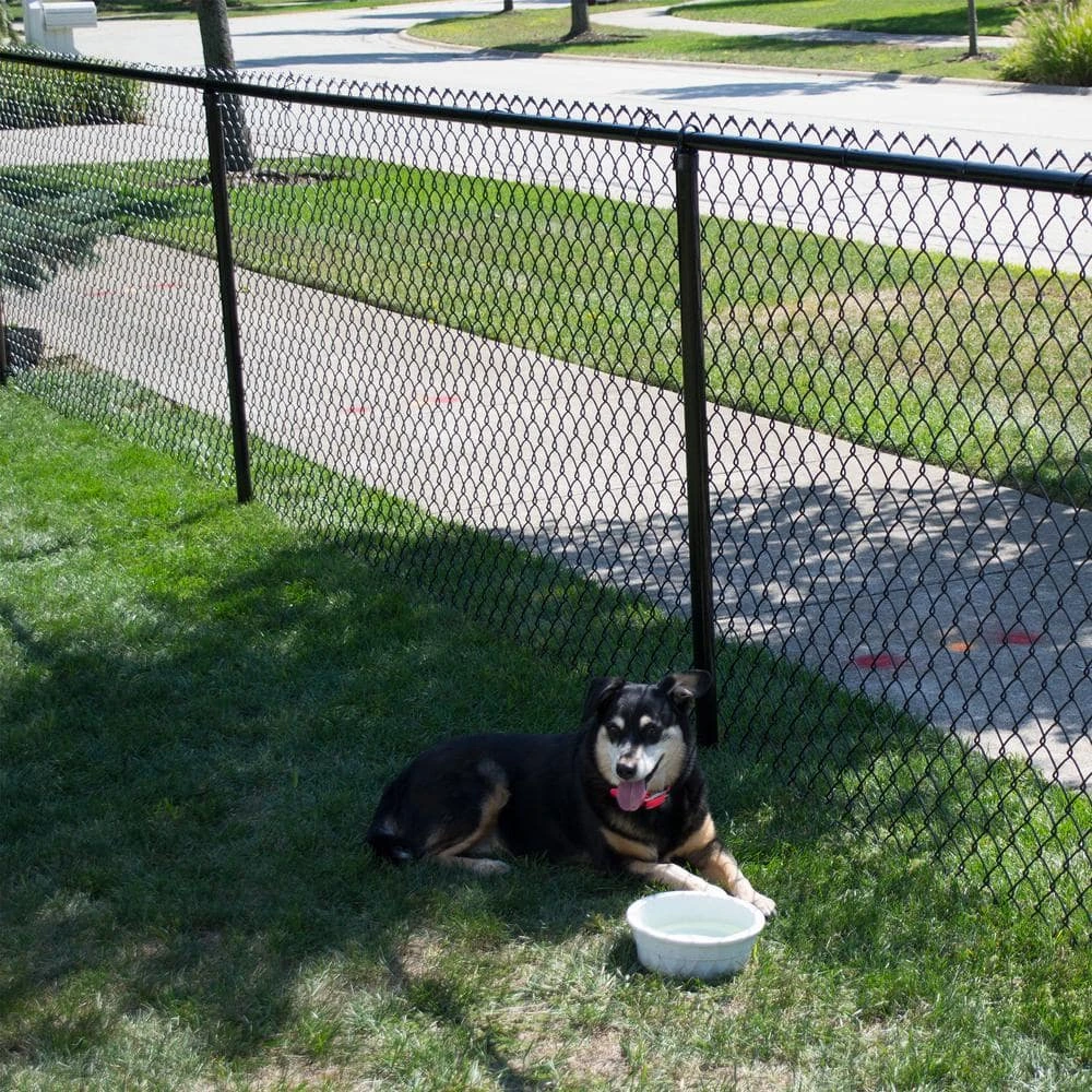 - 2-3/8 in. woven diamond mesh fence opening provides visibility and security