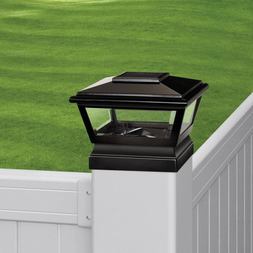 Add a unique and intimate glow to your vinyl fence project with Veranda solar post caps. Built to last, this low-maintenance vinyl post top resists fading and discoloring to provide continuous style.. Installation to the top of a vinyl post is quick and easy using PVC cement. The perfect touch on any fence or deck project, the sleek black finish brings timeless elegance to your landscape.