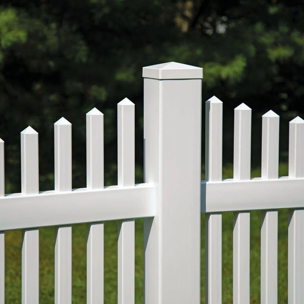 The 5 in. x 5 in. White Vinyl Pyramid Post Cap installs easily on a vinyl fence post with vinyl cement. This decorative, lightweight post cap adds a finishing touch to your fence. Available in a variety of colors.