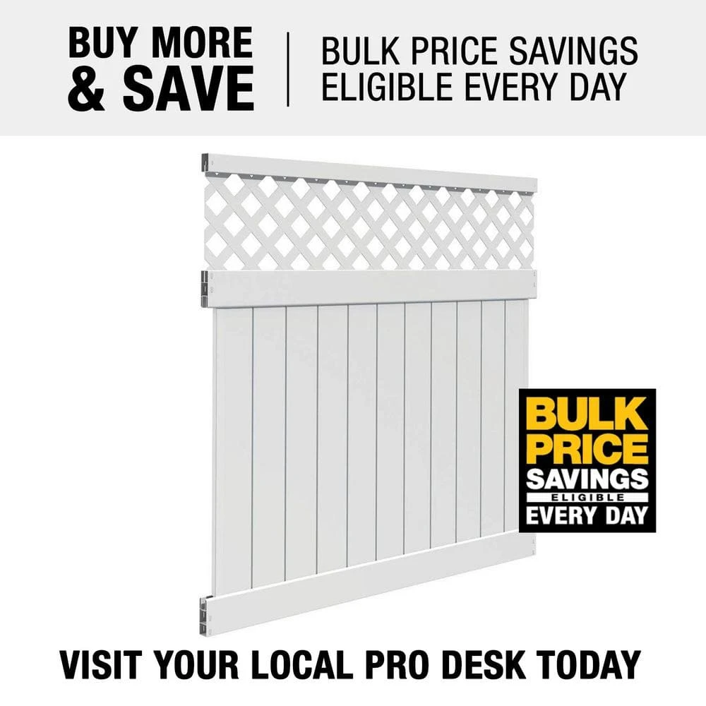 With an exceptional variety of different styles, Valley 6 ft. H x 6 ft. W White Vinyl Fence Panel Kit is perfect for the pro or the do-it-yourselfer. Our Vinyl fence offers the perfect combination of high quality and low maintenance you have been looking for. The lightweight kit components make installation fast and easy. The easy-to-assemble fence panel kit allows you to add privacy and curb appeal to your home.