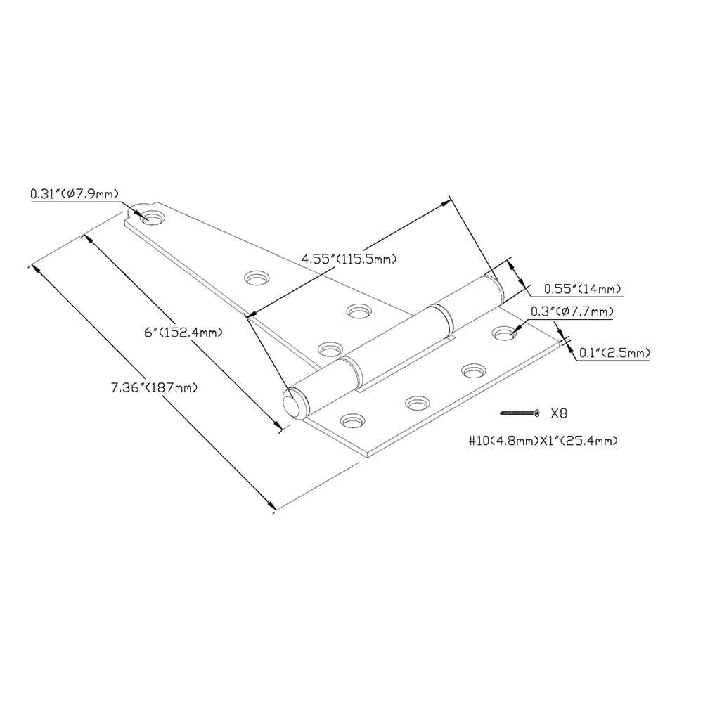 The Everbilt 6 in. Heavy-Duty Tee Hinges (2-Pack) are ideal for surface applications on doors, gates, sheds and tool boxes. Its bearing design eliminates metal to metal contact. Easy to install.