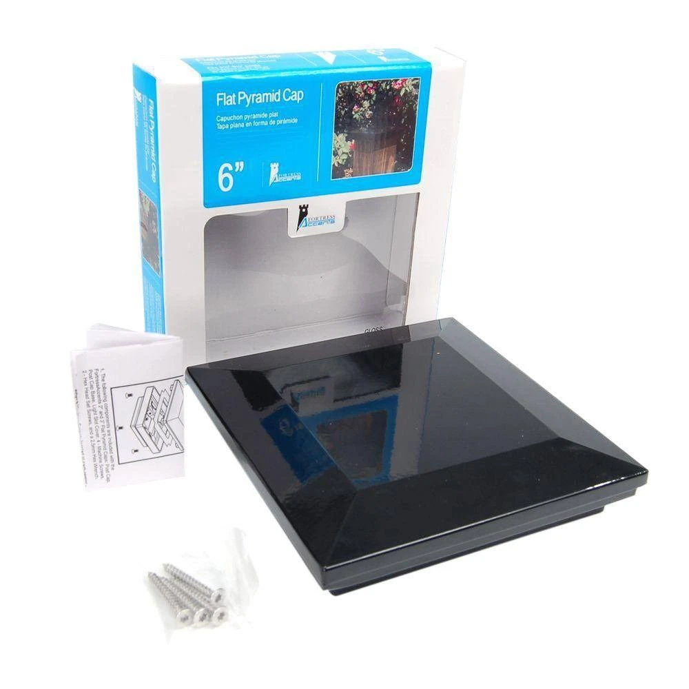 Discount ✨ 6 in. x 6 in. Gloss Black Aluminum Flat Pyramid Post Cap by Fortress Accents ❤️