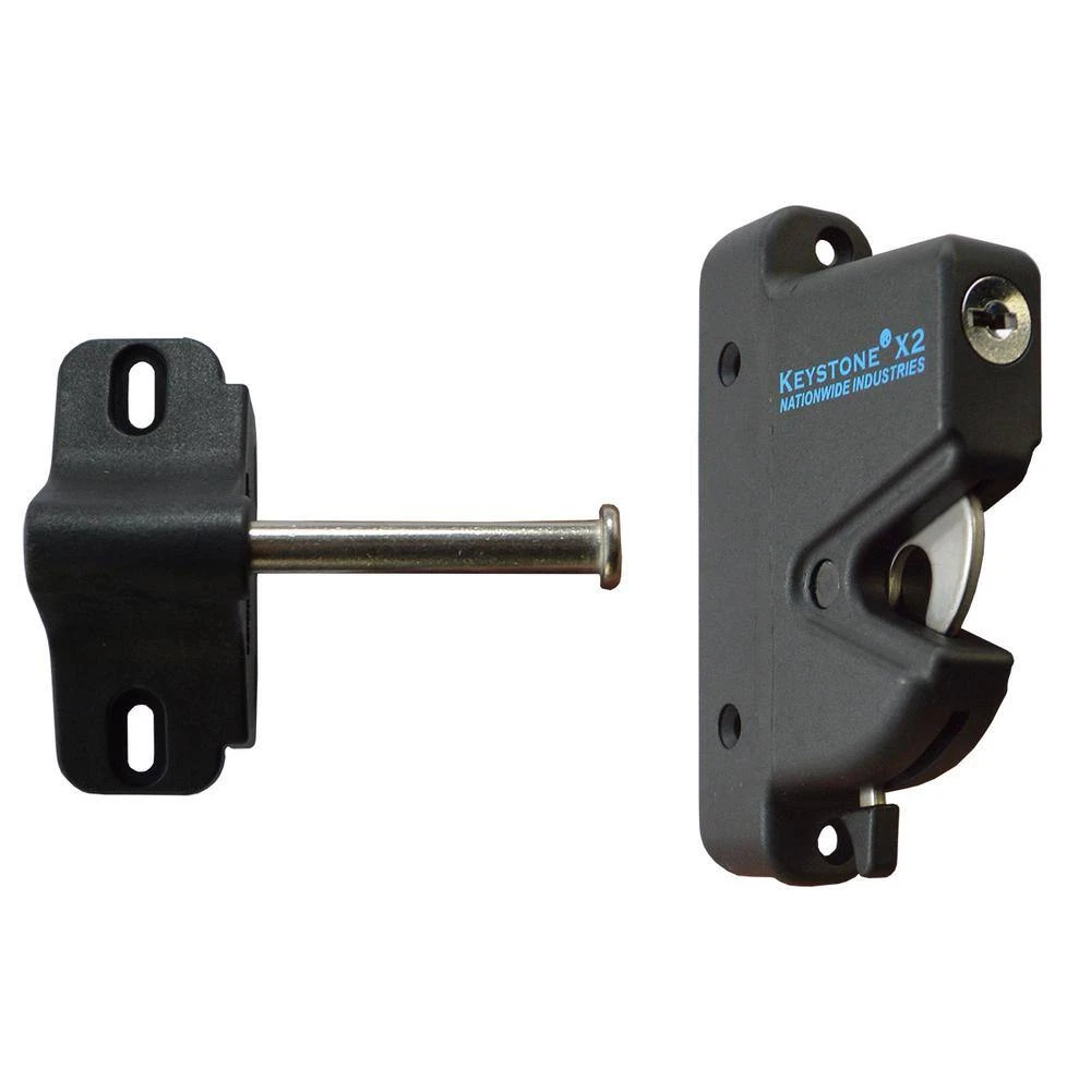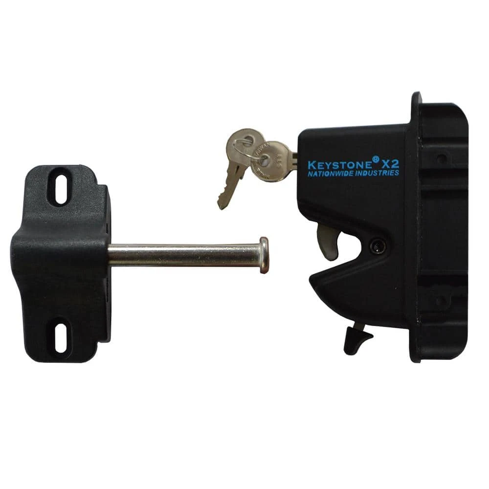 Secure your fence or railing gate with the Keystone X2 1-sided gate latch. Manufactured from premium quality, durable nylon polymer the Keystone X2 latch will not rust or corrode over time. The Keystone X2 gate latch with no external access also features a sophisticated, modern design and provides superior reliability. The Keystone X2 latch will work on vinyl, wood or metal gates, comes with 2 keys and is keyed alike, so if you purchase multiple latches, the same key can be conveniently used on all of them. The Keystone X2 latch can be installed to accommodate both left or right swinging gates; see installation instructions for details. The Keystone X2 comes with everything you need for installation, including instructions and all fasteners. The Keystone X2 latch fits on posts up to 5 in. and requires a gate gap between 1/2 in. and 1-3/4 in. It will only work with square gate frames. The Keystone X2 latch comes with a 1 million cycle warranty so you can feel confident it will stand the test of time.