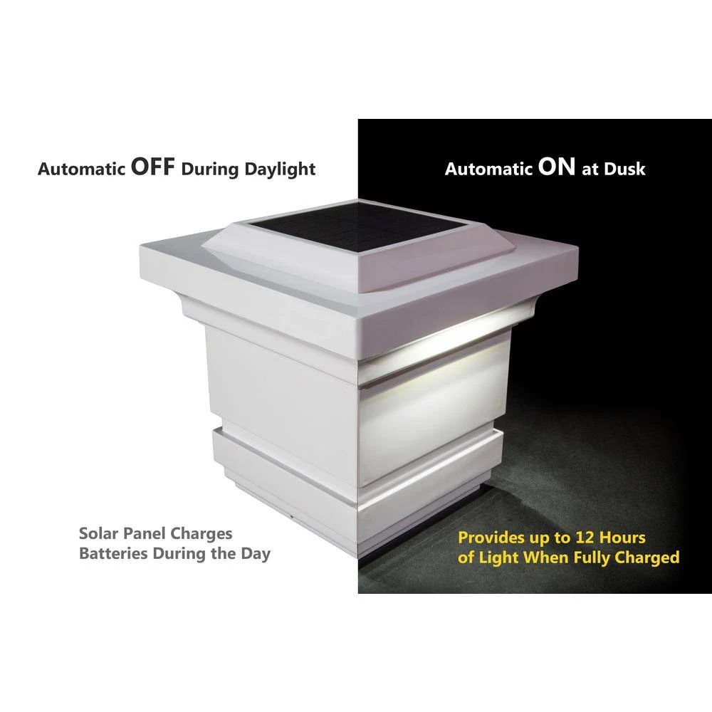 - Casts a brilliant white light downward onto the outside walls of the post cap and surrounding area