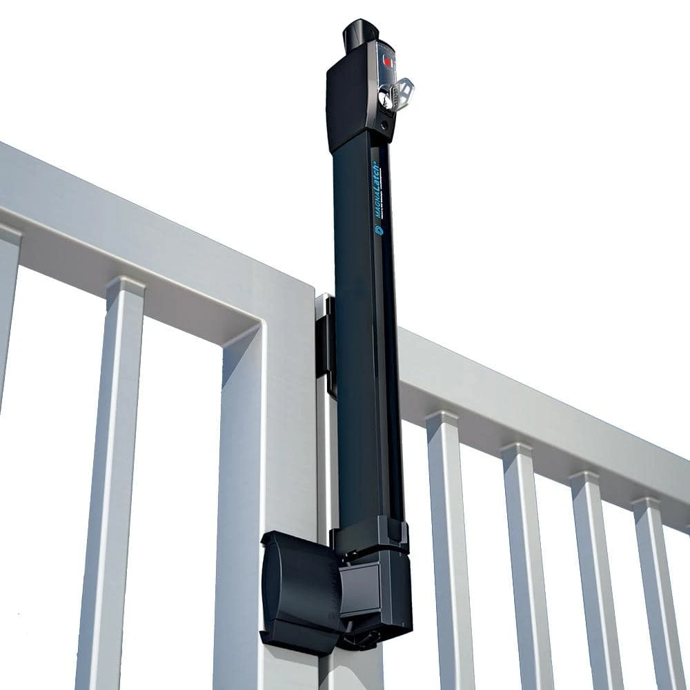 The MagnaLatch Series 3 Top pull magnetic safety gate latch model is designed and suitable for taller pool gates as well as for gardens and household gates. The built-in lock helps to prevent unauthorized entry into your yard or pool and cannot be shaken open. MagnaLatch Series 3 includes a new visible lock indicator, 6-pin re-keyable security lock, vertical and horizontal alignment indicators, and much more. It’s been tested to 2 million cycles and it’s 50% stronger than before. Simply put, it means you can recommend and install the new MagnaLatch Series 3 with confidence knowing that it’s the world’s #1 child safety gate latch. Constructed of industrial strength “metal replacement” polymer & stainless steel components that withstand the harsh effects of both time and weather. Manufactured and continuously tested in D&D’s facilities, under ISO9001 quality standards, MagnaLatch consistently provides the highest level of quality and performance available. Always confirm local fence/barrier regulations before installation. Fits standard gate to post gaps of 1/2″ to 1-1/2″ (13 – 38mm) for metal, wood or vinyl gates. Gate gap spacer allows for larger gaps 1-1/2″ to 2″. Limited Lifetime Warranty.