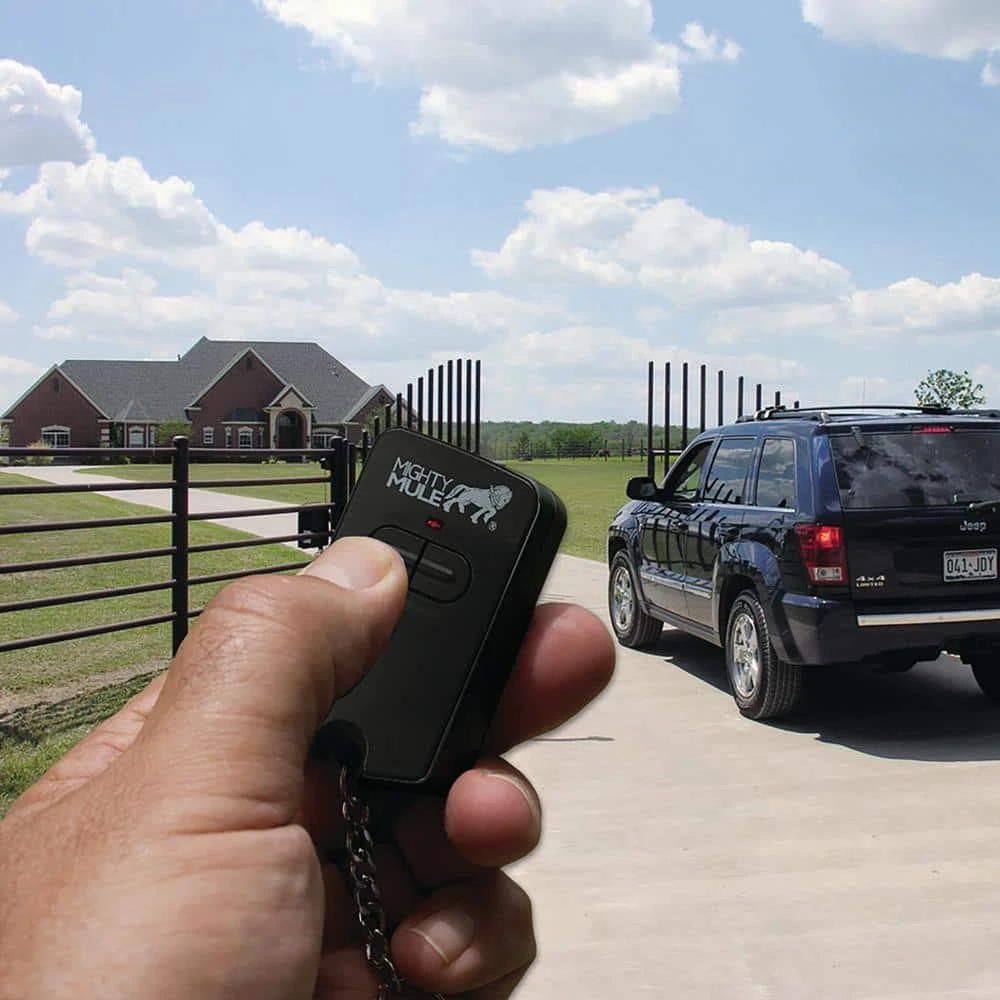 The Dual Button Keychain Remote is a great accessory for any Mighty Mule Gate Opener. ThIs Remote is ideal for a replacement or additional user to compliment any Mighty Mule Gate Operator. The Remote features a compact key chain design for easy portability. Use on up to two different applications, including automatic gate openers and garage door openers. An unlimited number of transmitters can be utilized by simply adjusting the code on the Remote to match your existing system. Garage door openers require the Universal Garage Door Receiver (RB709U-NB)