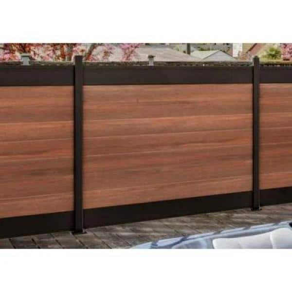 This 6 ft. tall multi-purpose post kit is a member of the Euro Style aluminum/composite fence family. This 6 ft. tall version (also available in 4 ft.) is lightweight black aluminum, strong, and has open channels on 3 sides to function as a line, end, corner, or “T” post. It comes to you with 2 channel cover slats for the sides you are not using. The Euro Fence is perfect for providing full privacy around a patio or deck. An aluminum post cap and base mounting plate are included with every kit. Minimal maintenance required to sustain the products rich appearance.