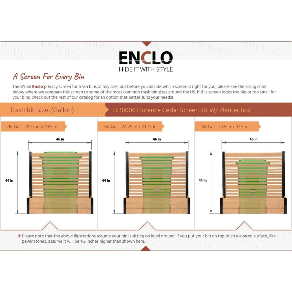 Become the envy of your neighborhood with the Florence Freestanding WoodTek Vinyl Privacy Screen and Planter Box kit. Functionality meets sophistication as you conceal unsightly yard items while growing beautiful plants and flowers. Designed using our state of the art WoodTek technology, this slatted privacy screen and planter box is made of weather resistant PVC that gives off the appearance of wood and is easy to maintain and clean since it is made of vinyl. The EC18006 comes in a cedar color and is perfect for hiding garbage bins, air conditioning units, children’s play toys and so much more. Have a deck or patio. This is a great decorative piece that will add value and beauty to your outdoor space. This privacy screen and planter box is freestanding which means you don’t have to worry about digging up your yard or pouring concrete. Each box contains 1 screen and planter box that assembles in approximately 45-minutes. The assembled unit (privacy screen and planter box) measures 44 in. H x 46 in. W x 9-1/2 in. L. The measurements of the planter box are 11 in. H x 46 in. W x 9-1/2 in. L and provides plenty of space for flowers and plants to accompany your screen. Multiple units can be purchased to create a picturesque enclosure for your deck, patio or other outdoor space. We also offer the exact same product in a chic WoodTek ash finish that can be found by searching SKU EC18007.