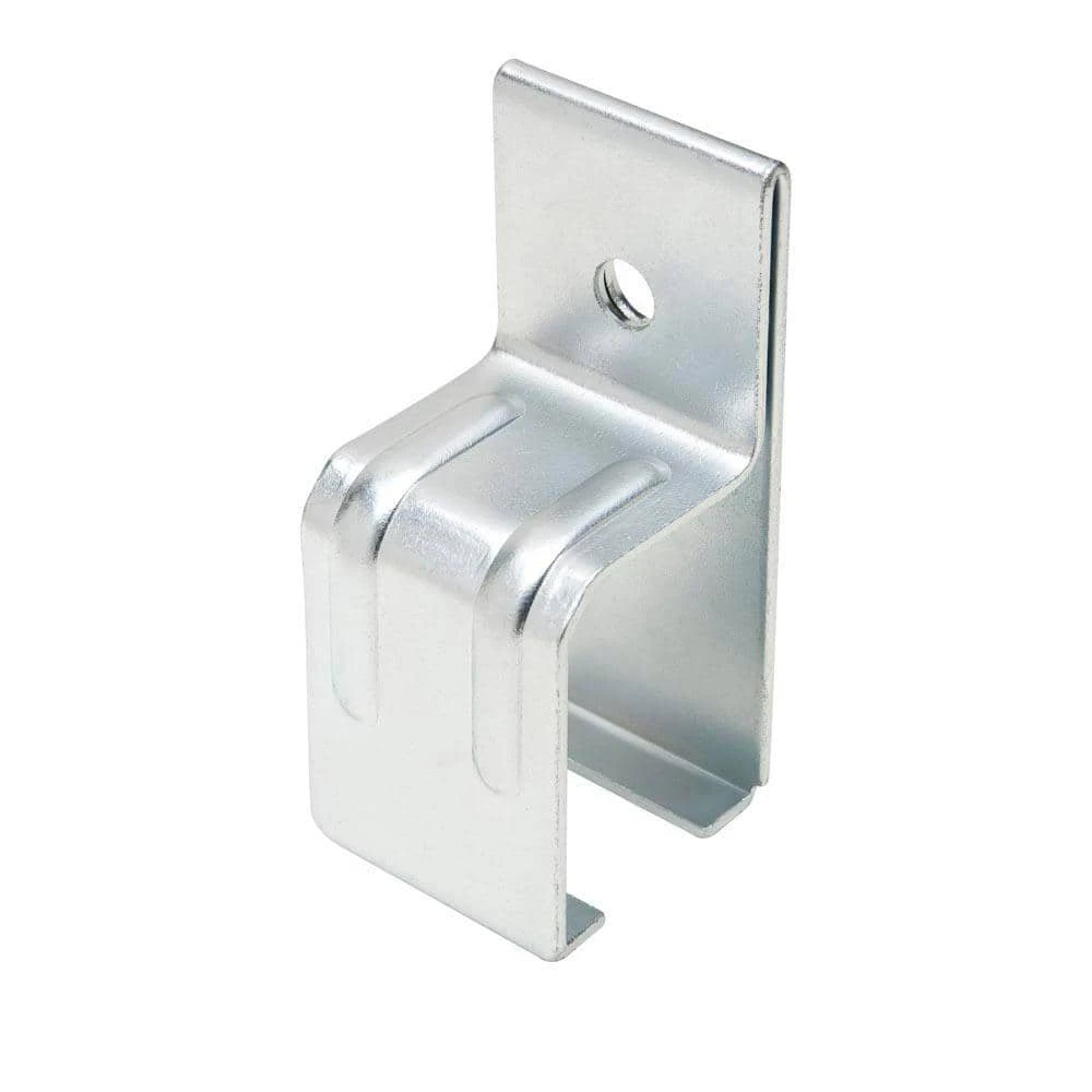 This Everbilt Box Rail Bracket with set screw to join 2-lengths of rail to the side of the building. Galvanized, rust resistant finish. Lag screws not included.