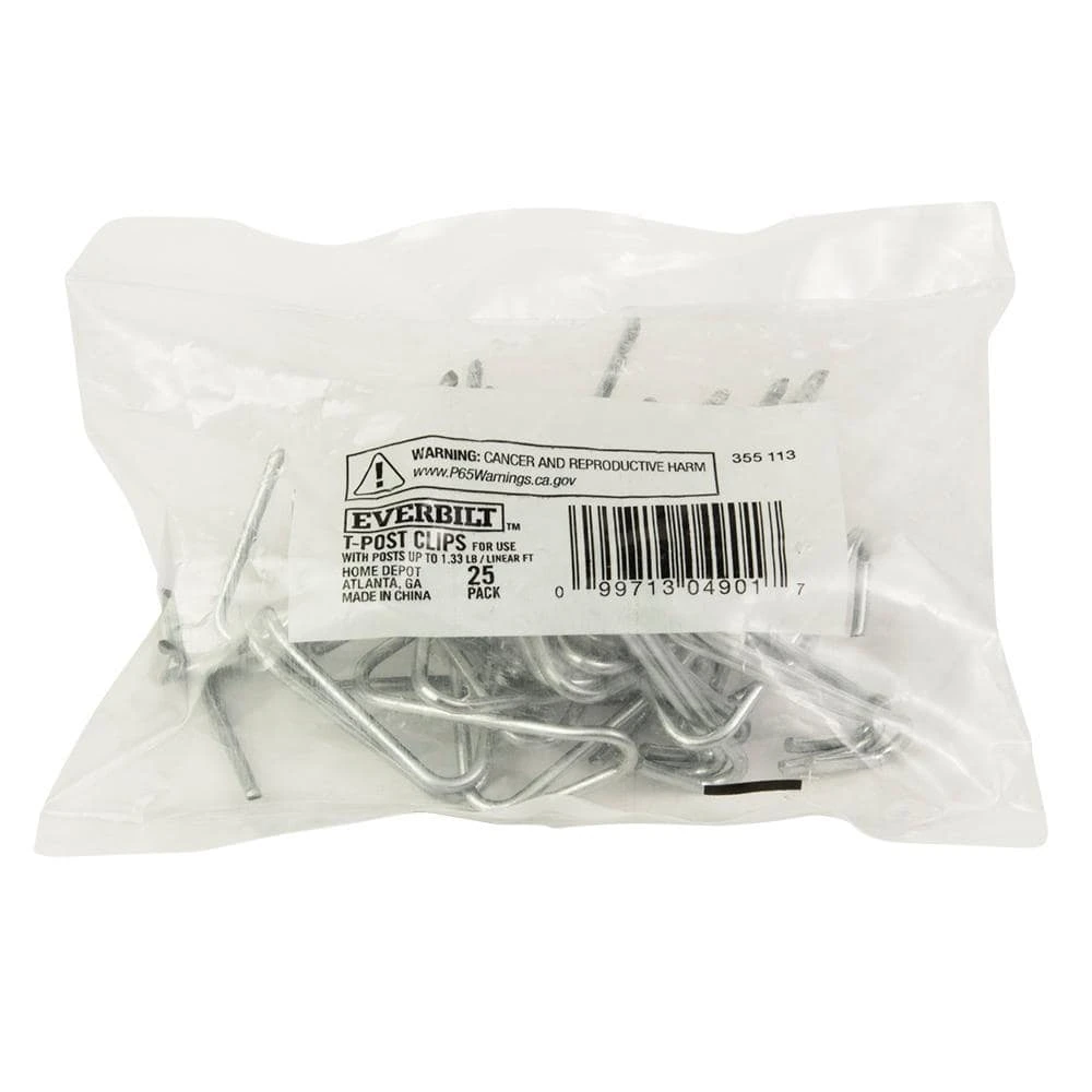 These universally designed Aluminum Fence T-Post Clips are designed to keep fencing wire taut and firmly fastened to a standard T-post. Each clip is made from a galvanized steel for added corrosion resistance. They can also be bent and formed into shape with pliers.