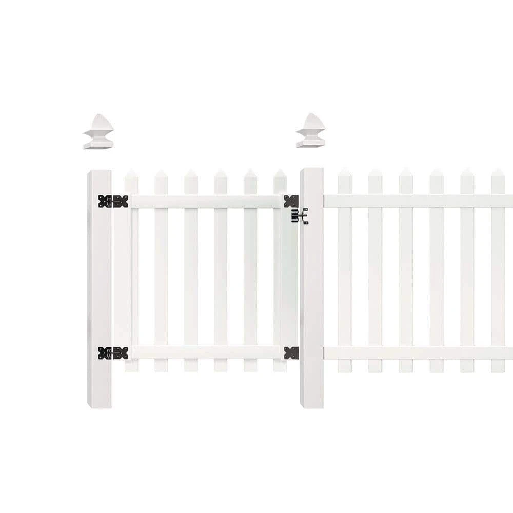 This unassembled, spaced picket gate kit adds convenient entry and exit points along your fence run wherever desired. Its traditional charm is used to access walkways, yards and gardens. Picket caps are sonically welded to withstand impact. Our lifetime limited warranty ensures you enjoy your spaced picket gate for years to come. The gate features the same look on both sides to keep both you and your neighbors happy. Match your gate style with your fence panels and add post caps or cast stone post covers, sold separately, to enhance your fence’s appeal.
