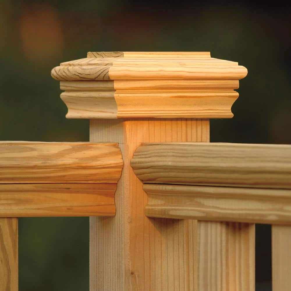 Simply add style with this pressure treated 4 in. x 4 in. Unfinished Wood Pyramid Post Cap. This post cap features a pyramid-style that gives your existing posts a new look. This cap fits a standard wood 4 in. x 4 in. post.