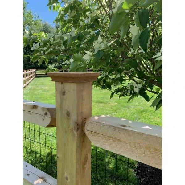 Give your fence the protection it deserves with 6 in. X 6 in. Slip over miterless wood post caps. Fitting atop 6×6 fence posts measuring 5-1/2 in. To 5-3/4 in., the stylish Mahogany base prolongs the life of any fence post by guarding against rain and the elements. The one piece joint-less design features a new england style trim and no staples or glue. The advantage of miterless post caps is evident in the prolonged life of fence posts and caps. This one-piece flat cap is ready for weather treating to maximize protection, or controlled exposure for rustic appeal. Most effective when mounted with glue, the 6×6 wooden post cap installs easily and adds style to your yard while helping your fence last a lifetime.