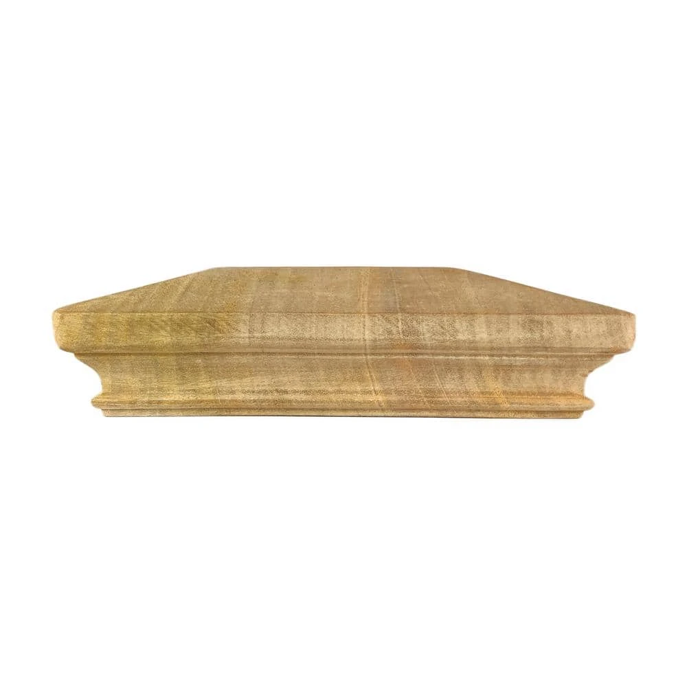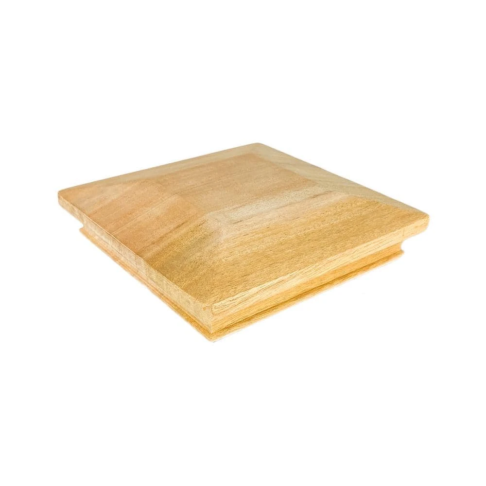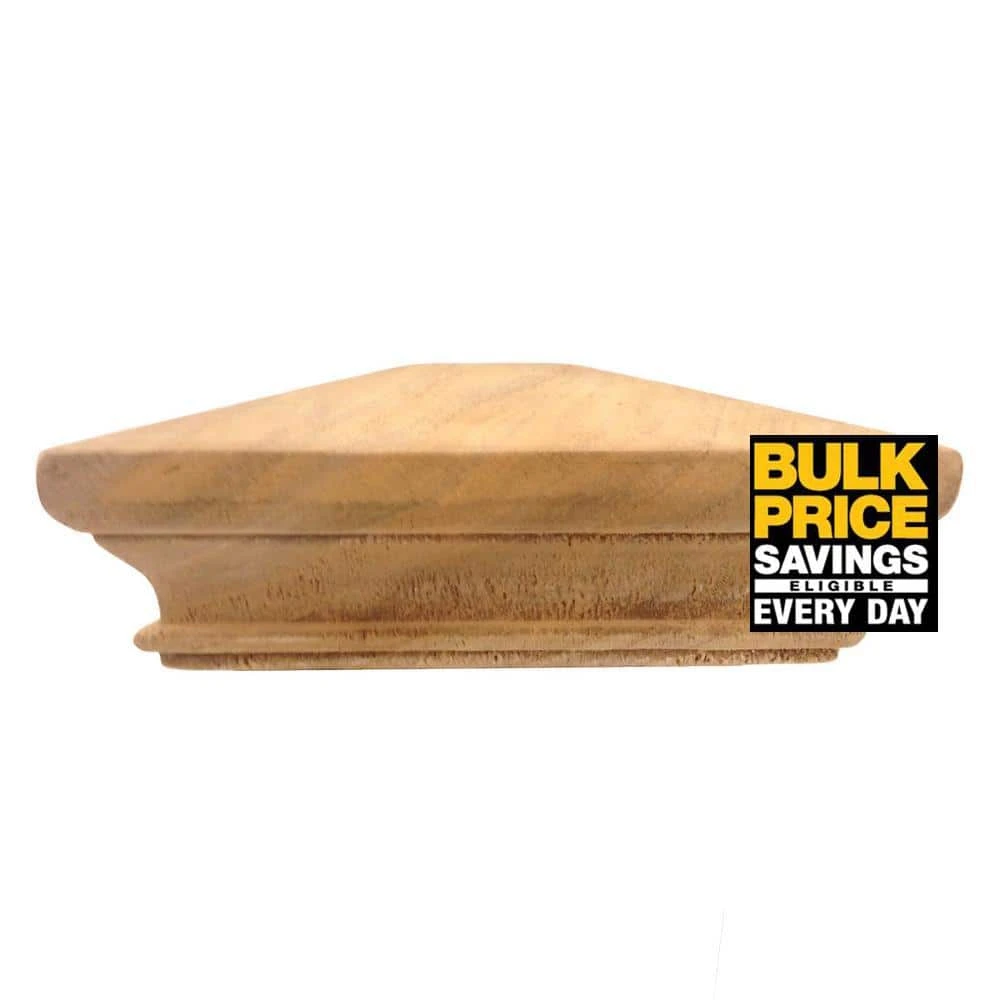 Give your fence the protection it deserves with 6 in. X 6 in. Slip over miterless wood post caps. Fitting atop 6×6 fence posts measuring 5-1/2 in. To 5-3/4 in., the stylish Mahogany pyramid prolongs the life of any fence post by guarding against rain and the elements. Our one piece joint-less design features a new england style trim and no staples or glue. The advantage of miterless post caps, versus others with joints at the corners, is evident in the prolonged life of your deck and fence posts. Less water gets underneath the cap and into the top of your post making our miterless products a necessity for any deck or fence. This one-piece wood pyramid post cap is ready for weather treating to maximize protection or controlled exposure for rustic appeal. Most effective when mounted with glue, the 6×6 wooden post cap installs easily and adds style to your yard while helping your fence last a lifetime.