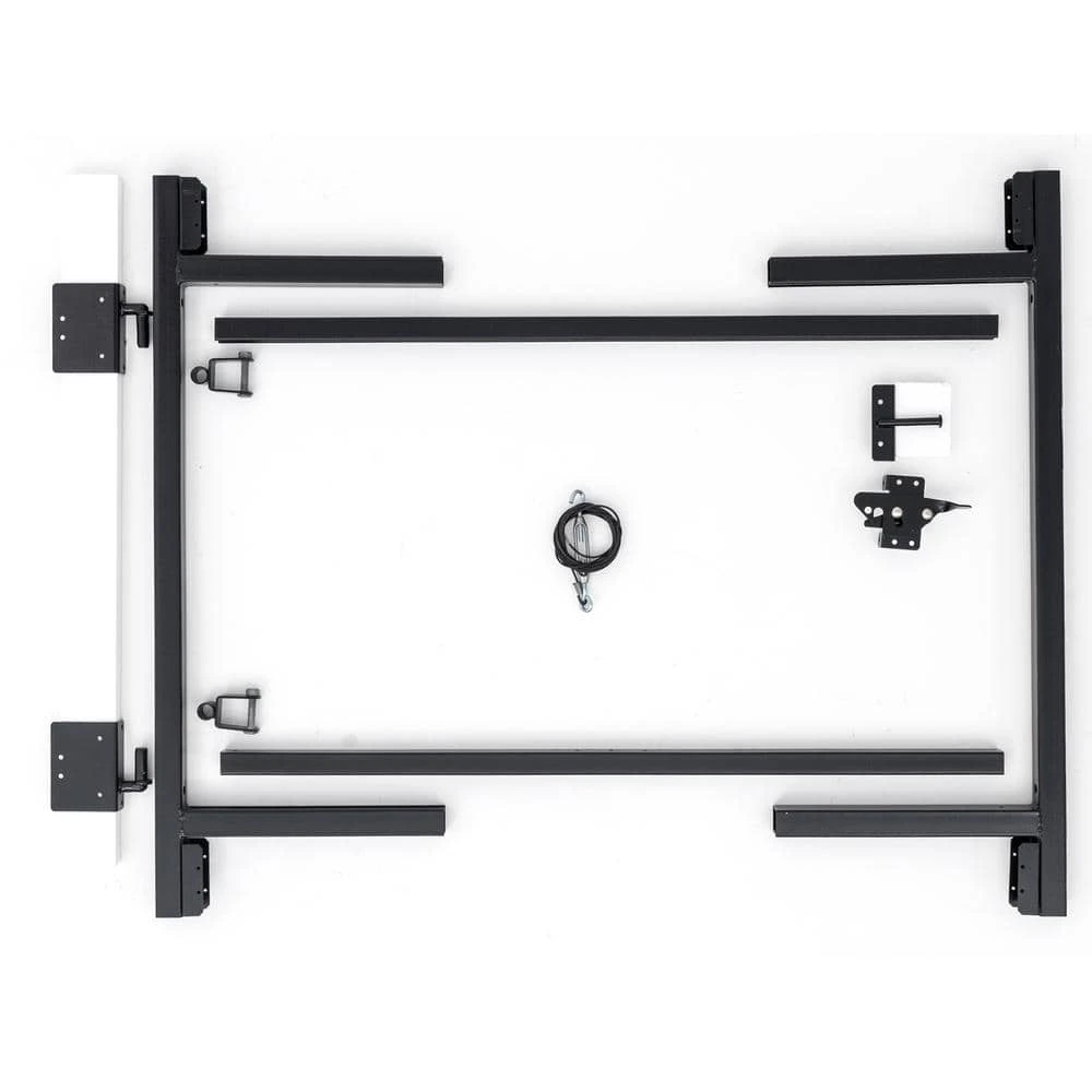 - KIT INCLUDES: Vertical frame, spreader bars, frame hinges, post hinges, 2-way gate latch kit, truss cable and screws