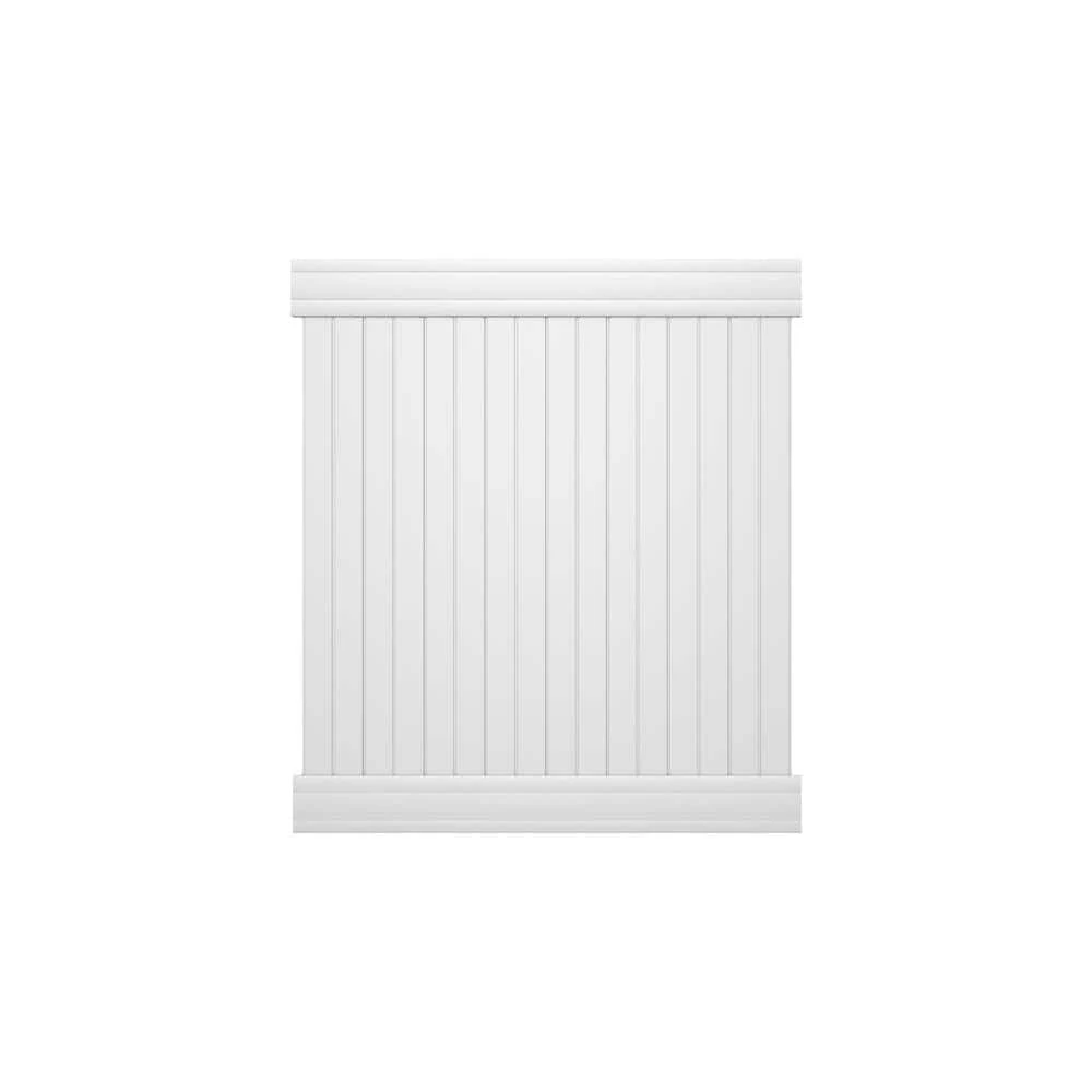 Add privacy and security to your outdoor space with the Veranda 6 ft. x 6 ft. Vinyl Overland Privacy Fence Panel Kit. This panel kit is made of durable, low-maintenance vinyl. It will never need to be painted or stained. This panel features a unique, versatile design – its tongue-and-groove pickets can be installed horizontally or vertically between the top and bottom rails. In either orientation, the pickets fit snugly together for gap-free privacy. The kit contains 8 pickets, 2 rails, and 2 U-Channels. The rails slide into prerouted holes in the vinyl fence posts, sold separately. It’s backed by a lifetime limited warranty.