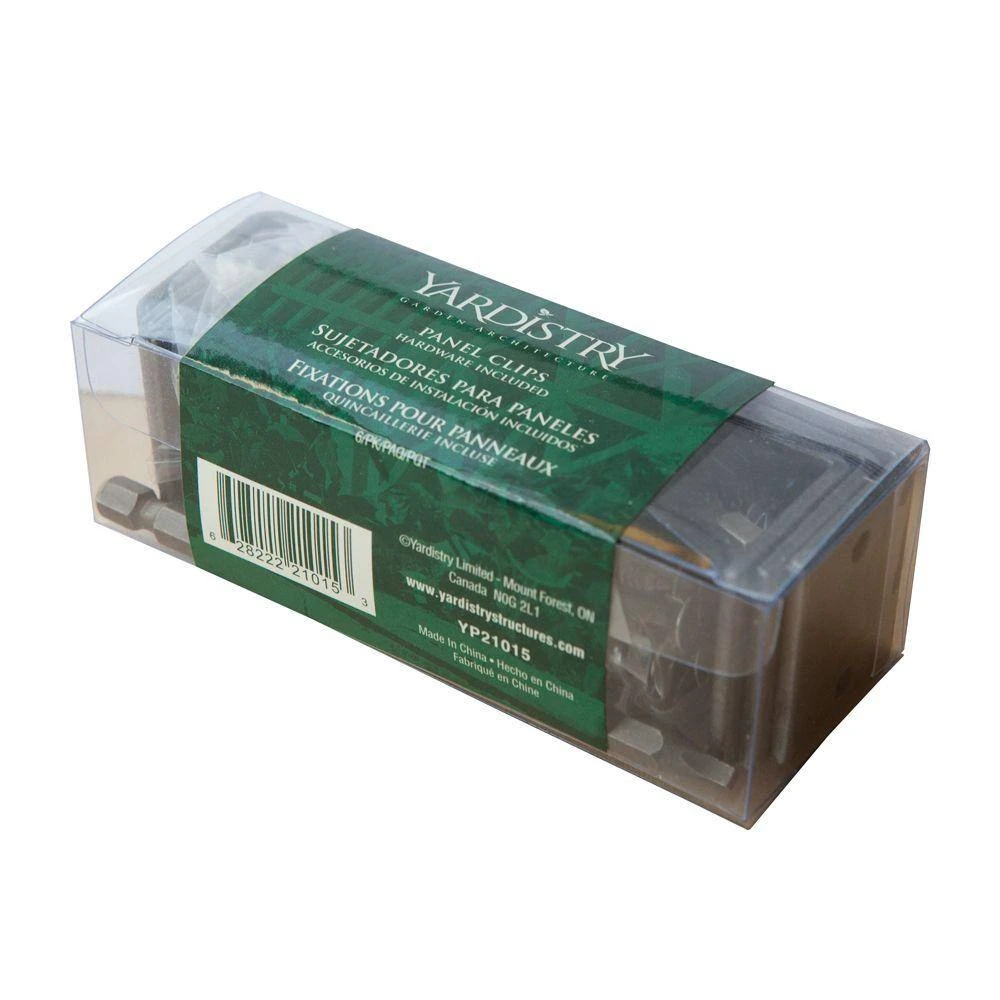 Yardistry’s Panel Clip and Hardware Package contain all hardware and metal components necessary to build any Yardistry panel configuration. Inside all hardware for attaching individual panels together as well and the metal components for securing Yardistry panels to 4 in. x 4 in. or 6 in. x 6 in. posts are included. A set of driver bits is also included in each package.