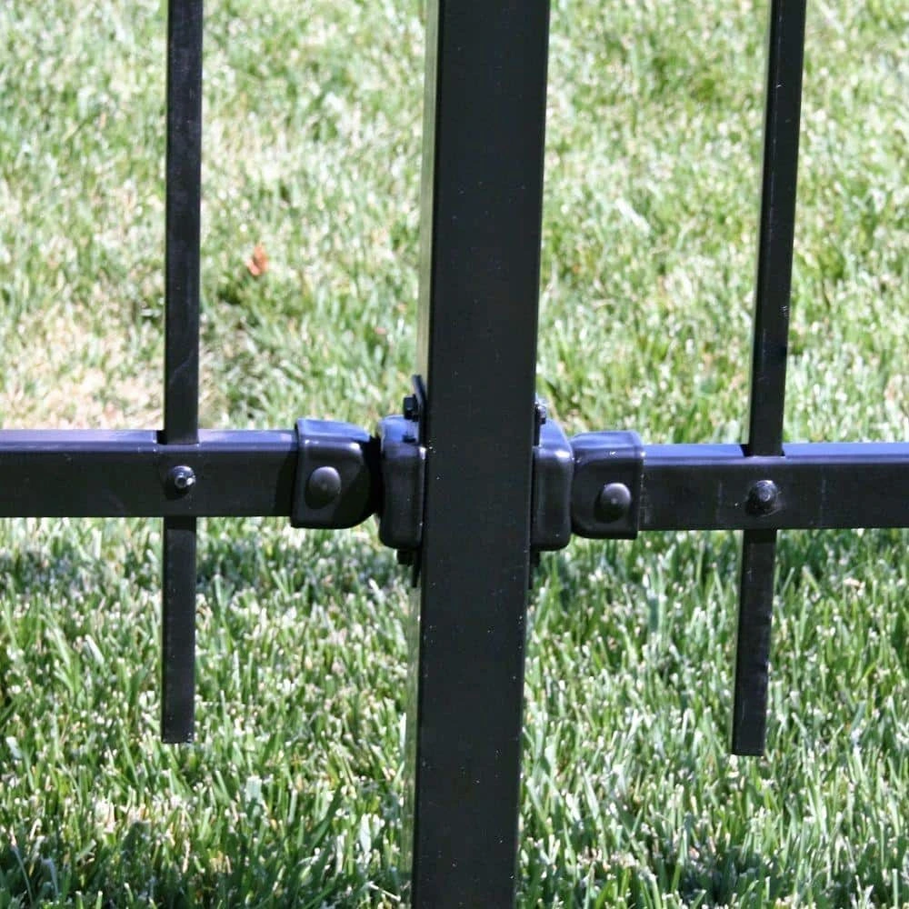 The Professional Series 1.75 in. Black Powder-Coated Steel Fence Mounting Brackets comes as a 2-pack. Use this mounting bracket to connect adjustable fence panels to posts. These brackets are designed to allow panel angles in up/down and left/right direction.