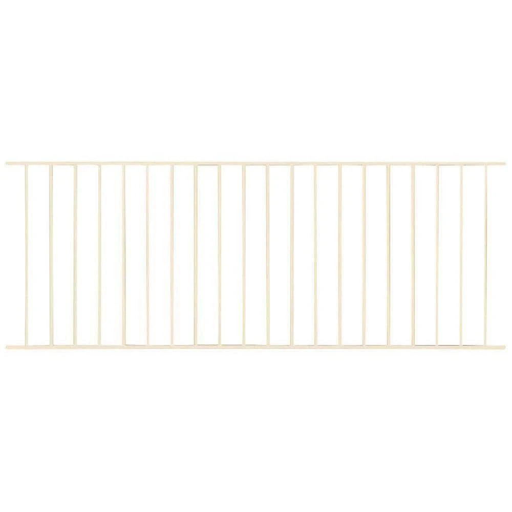 With the 3 ft. x 8 ft. Galvanized Steel 2-Rail Flat-top Fence Panel you can build a strong, secure and beautiful enclosure for your yard or garden. Alternatively, you can use this durable steel panel to define a boundary. The installed panel is 3 ft. high and has pickets that are evenly spaced 4 in. Apart, allowing you privacy while maintaining an open view. The Navajo white color adds a stylish upscale appearance to most yards.