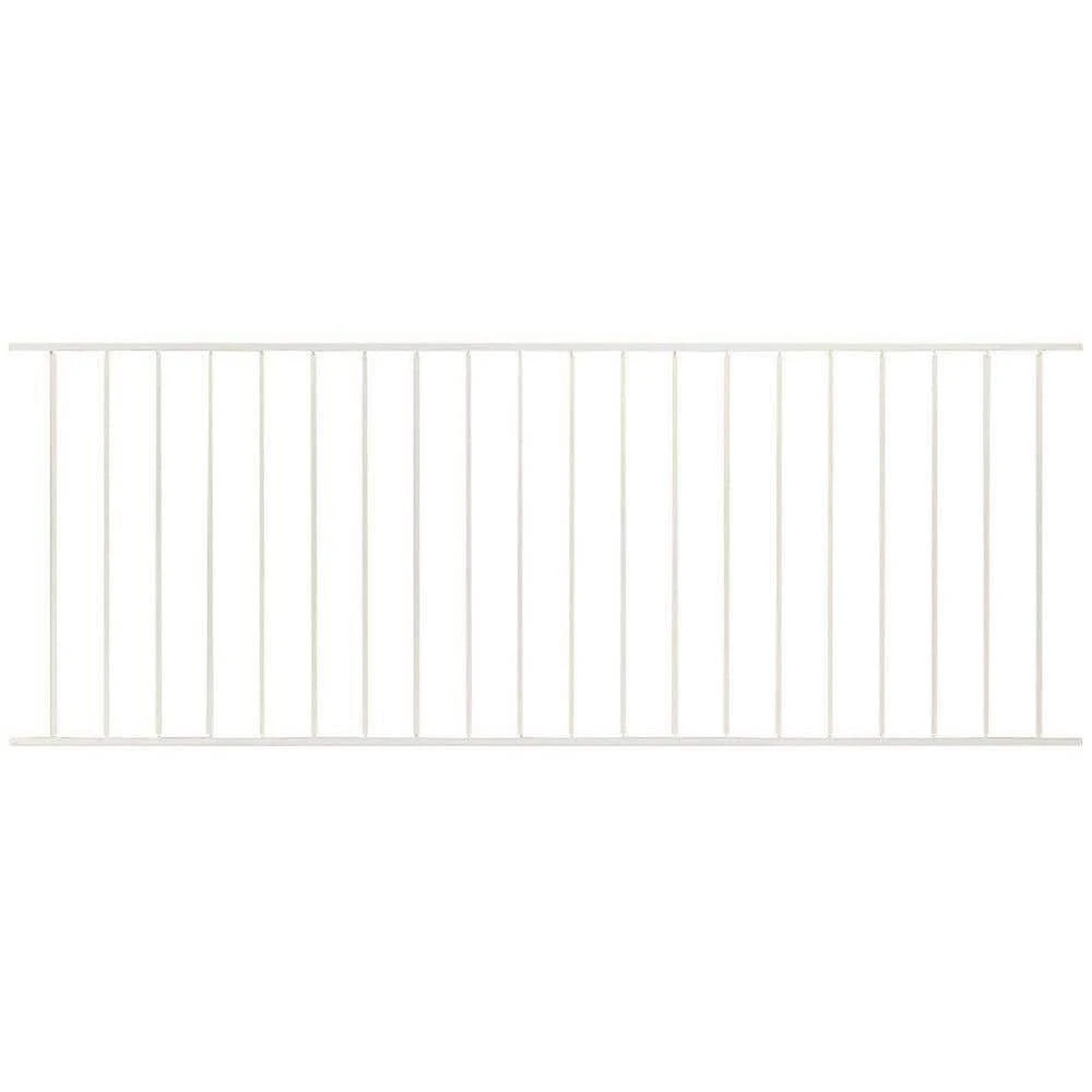 With the 3 ft. x 8 ft. Galvanized Steel 2-Rail Flat-top Fence Panel you can build a strong, secure and beautiful enclosure for your yard or garden. Alternatively, you can use this durable steel panel to define a boundary. The installed panel is 3 ft. high and has pickets that are evenly spaced 4 in. Apart, allowing you privacy while maintaining an open view. The white color adds a stylish upscale appearance to most yards.