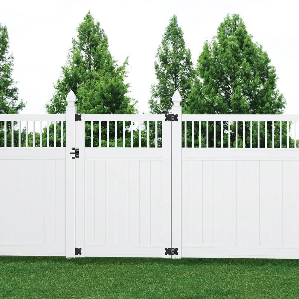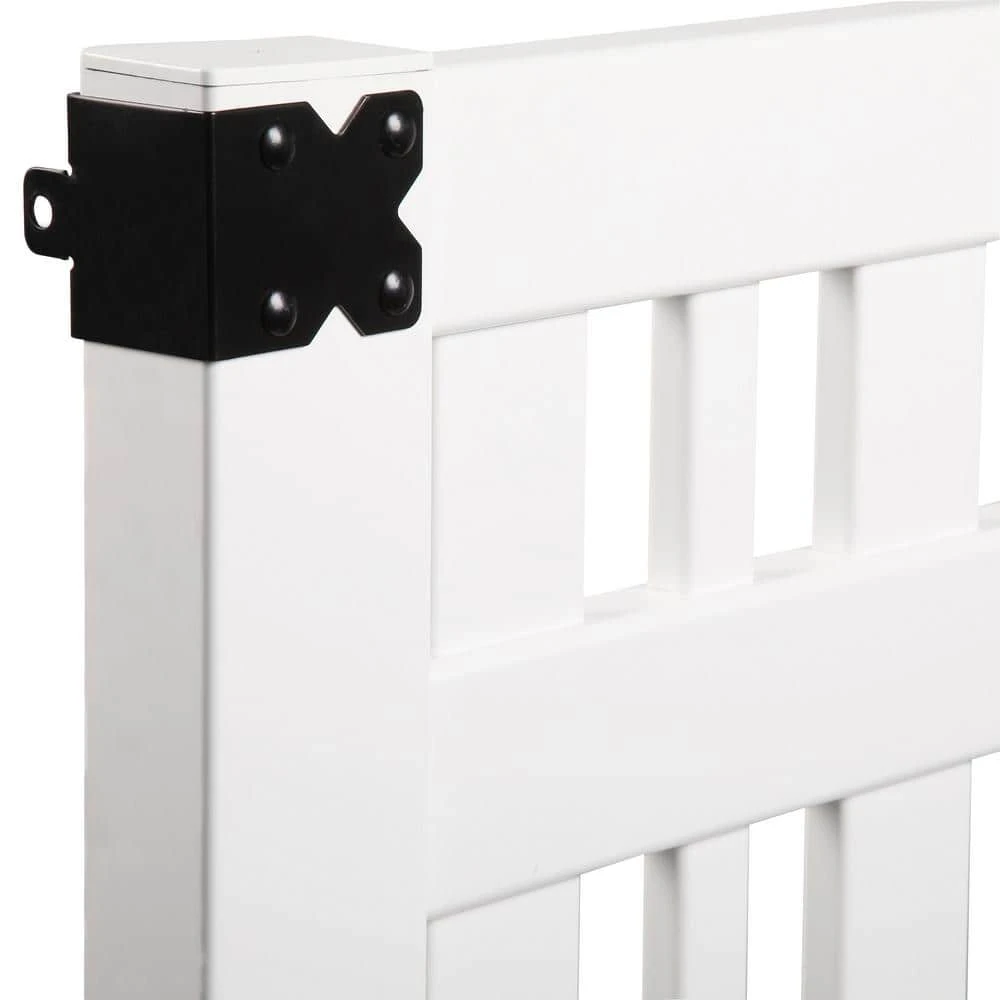A gate is essential in many fences. It offers a secure, convenient access into the yard. If you are looking for a gate for the Woodbridge Closed Picket Top Fence, choose our matching 4 ft. x 6 ft. Veranda Vinyl Woodbridge Closed Picket Top Fence Gate. It’s made with the same durable, low-maintenance vinyl and features the same enclosed-picket top design. This Woodbridge Closed Picket Top Gate comes in an easy-to-assemble kit that includes pickets, rails, jambs, and gate hardware. The gate hardware is black which provides a striking contrast to the white vinyl gate. It’s backed by a lifetime limited warranty.
