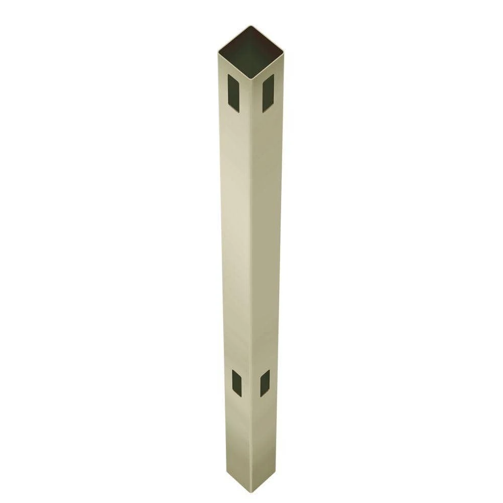 The Woodbridge 5 in. x 5 in. x 8 ft. Tan Vinyl Fence-Routed Corner Post is made from professional-grade vinyl for excellent durability. Vinyl resists warping, splintering, yellowing and rot, and the tan finish does not require painting, offering you easy maintenance. Posts feature a lightweight design and are constructed with a UV-resistant material. Panels, gates and post caps sold separately.