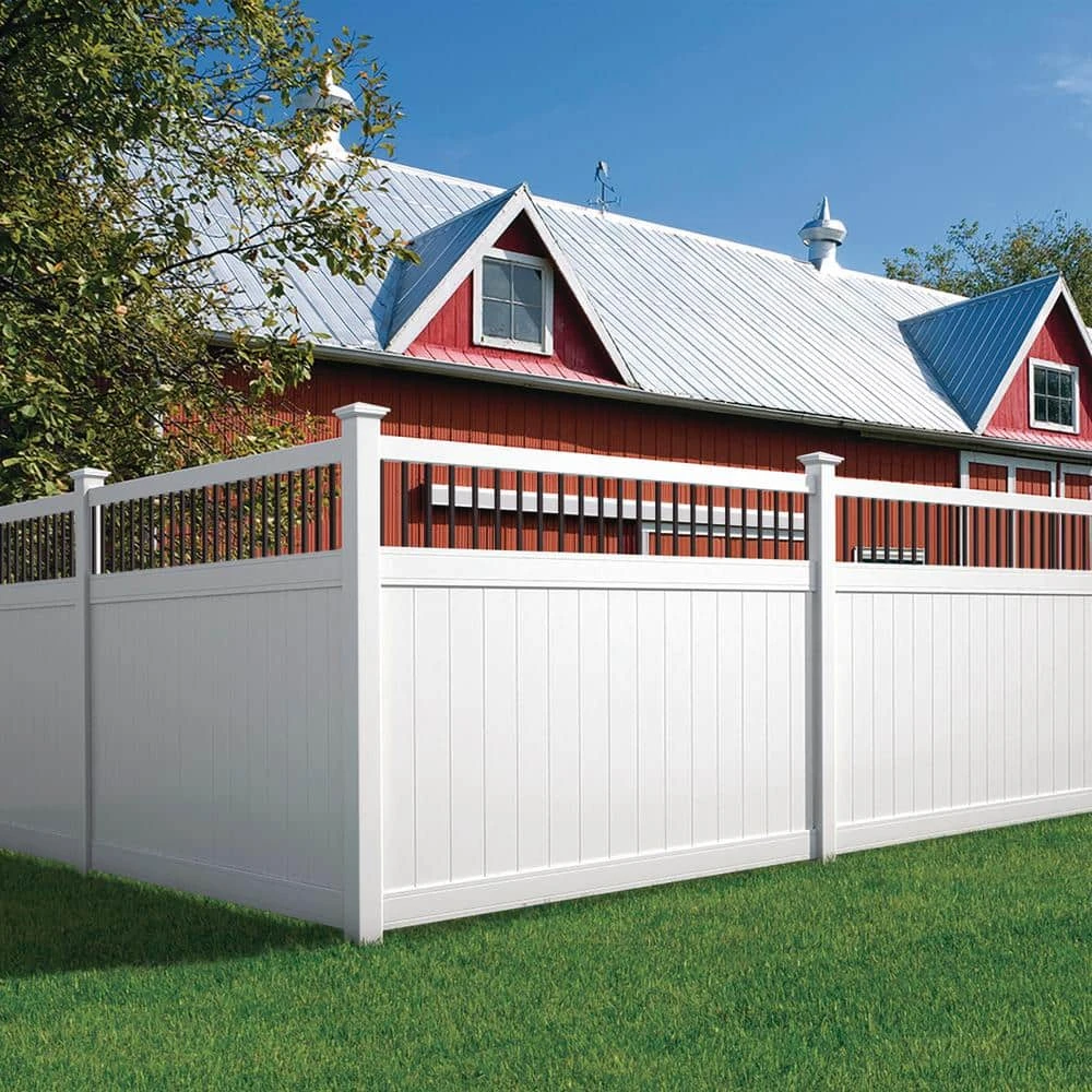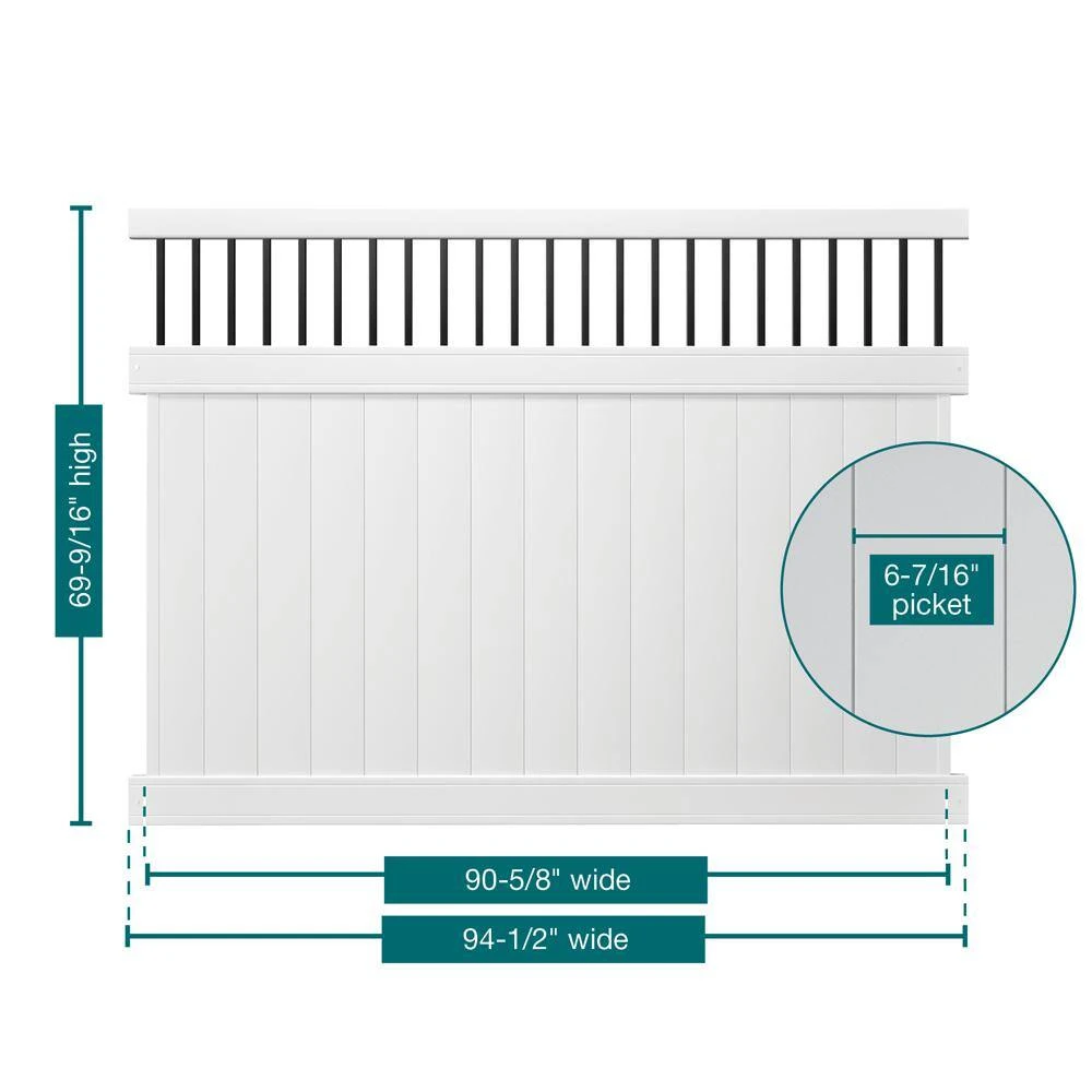 Looking for a stylish fence with minimal upkeep to provide some privacy. The 6 ft. x 8 ft. Woodbridge Aluminum Baluster Top vinyl fence is the perfect choice for you. The entire fence panel is made of low-maintenance materials, from the durable white vinyl picket panels and rails to the powder-coated black aluminum balusters. The use of mixed materials adds interest to the classic privacy vinyl fence style. The fence panel is easy to assemble with standard tools. Once assembled, it slides into routed holes in the vinyl fence posts (sold separately) for a fastener-free installation. Made of top-quality materials and designed with a timeless look, the Woodbridge Baluster Top fence will give you years of enjoyment.