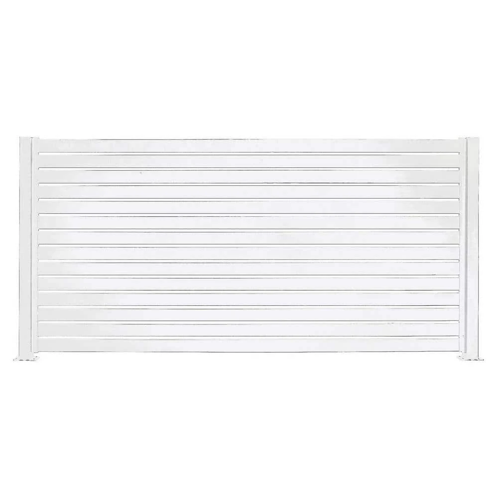 Create a perfect backyard oasis with the Aluminum Quick Screen horizontal Slat fencing. This product has versatile uses including fencing, screening, and decorative. The fence is 100% aluminum and low maintenance. The material can be cut to your desired size. The Easy to Install fence not rot, twist, or suffer termite damage. Size (94 in. W x 71 in. H x 2.5 in.) The aluminum is powder coated and available in white, black, beige and slate gray. The complete kit comes with 1 fence panel which consists of aluminum slats, Mid-rail, caps, spacer blocks, and screws. base plates, side frames, 1-way post, 2-way, posts, and the gate is sold separately. It is very important that you install videos, FAQ, and the slat fence quick screen guide. Post are sold Separately.