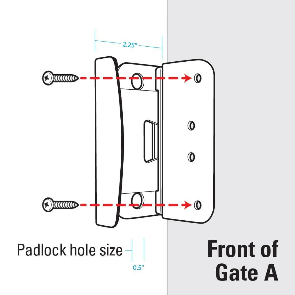 Upgrade your gate with the Fenix Easy Open Gate Latch. A simple push or pull activates the latch mechanism from either side. One-handed operation keeps a hand free for all those things you need to carry. Functions as a handle and a latch – no need for a separate pull. May be padlocked for extra security. Installs in minutes. For use on wood, metal and vinyl gates 1-1/2 in to 3 in thick. Reversible for left or right hand gates. Slots on strike provide easy adjustment for gate sag.