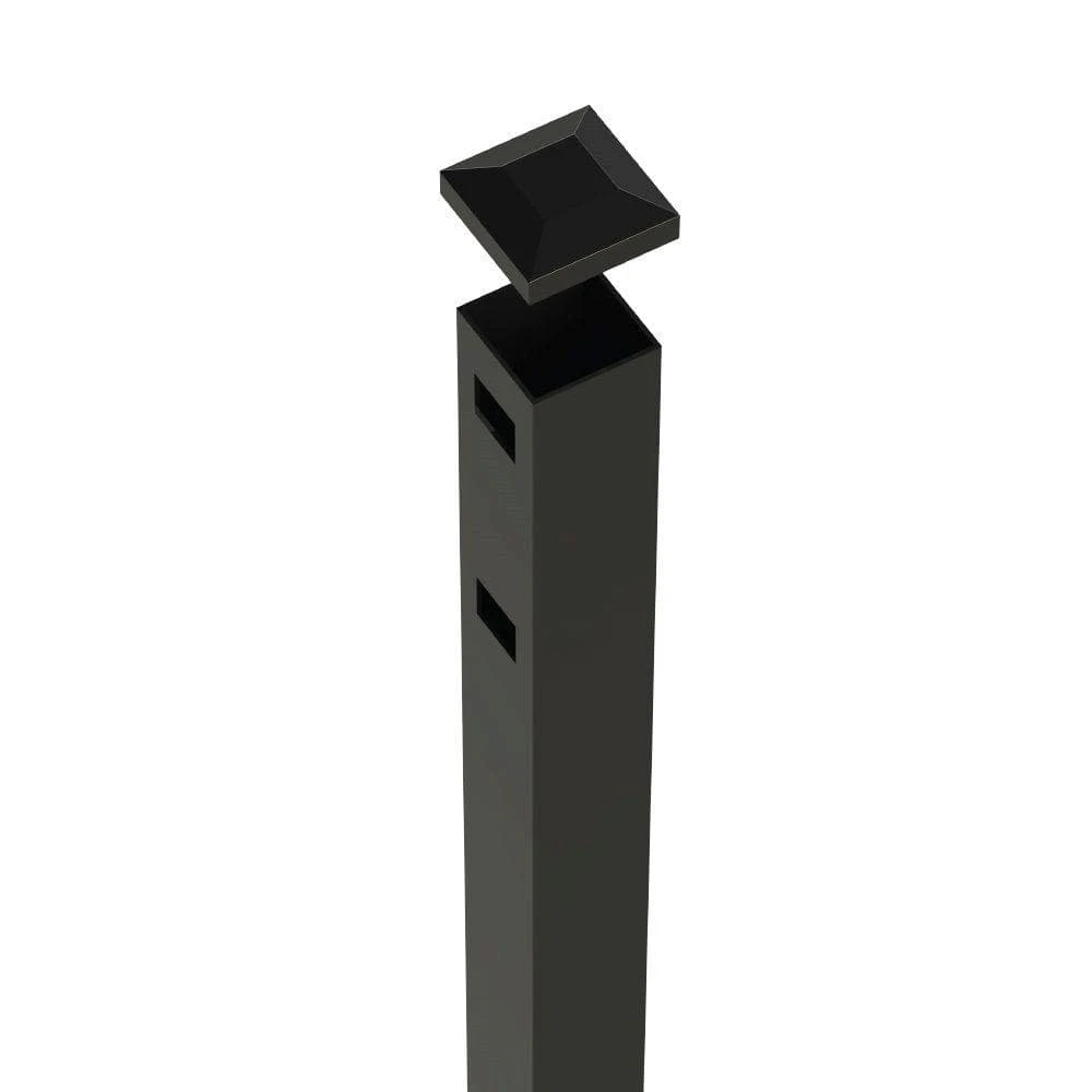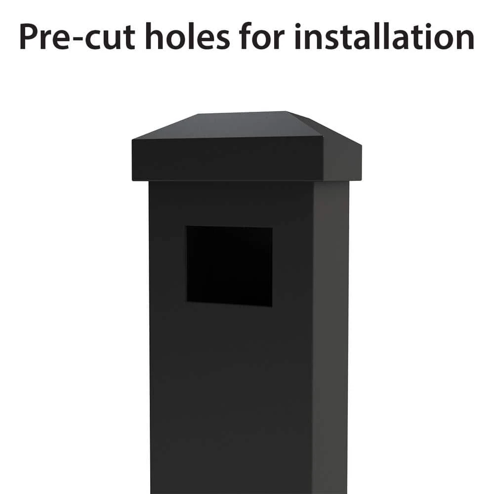 6 ft. end/gate post features pre-drilled holes on one side of post to provide an end point for your fencing system or to support your gate. The post features a powder-coated finish to help prevent rusting, provide longer lasting life and low maintenance. The post includes (1) flat post cap and hardware needed for installation. This 6 ft. end/gate post is compatible with 4 ft. H Vinings aluminum fence panels and gates. Refer to the Vinings fence line for corresponding panel, gates, and accessories.