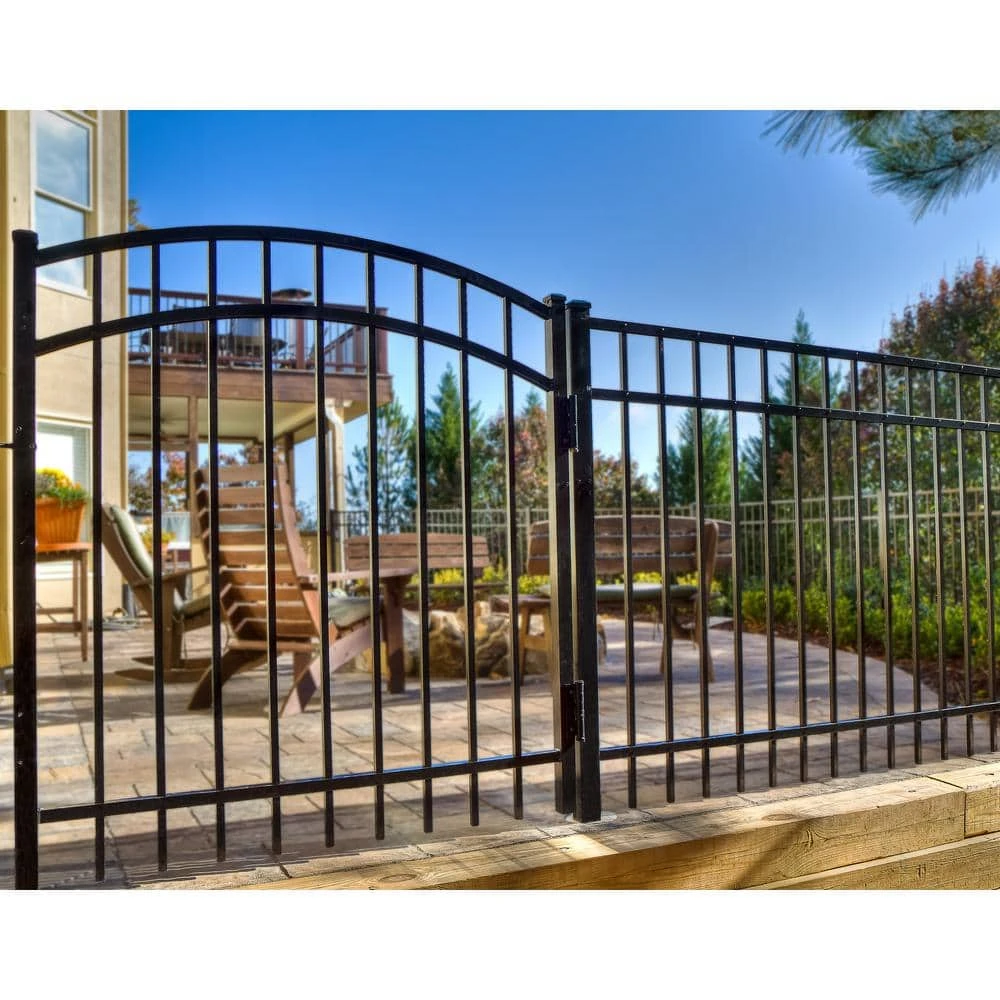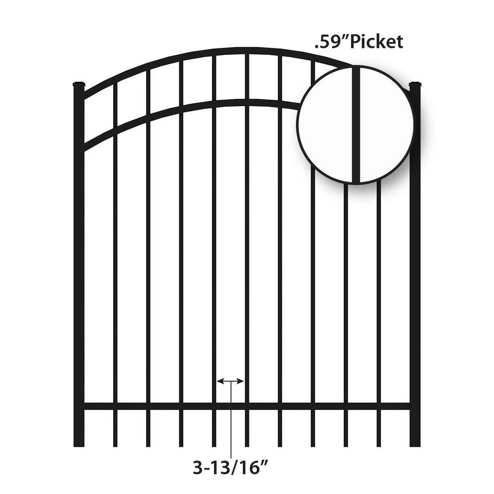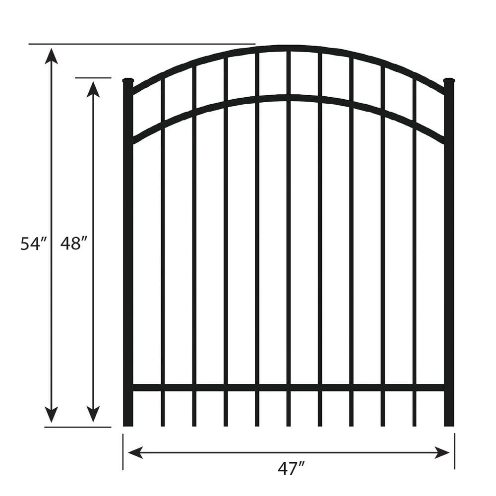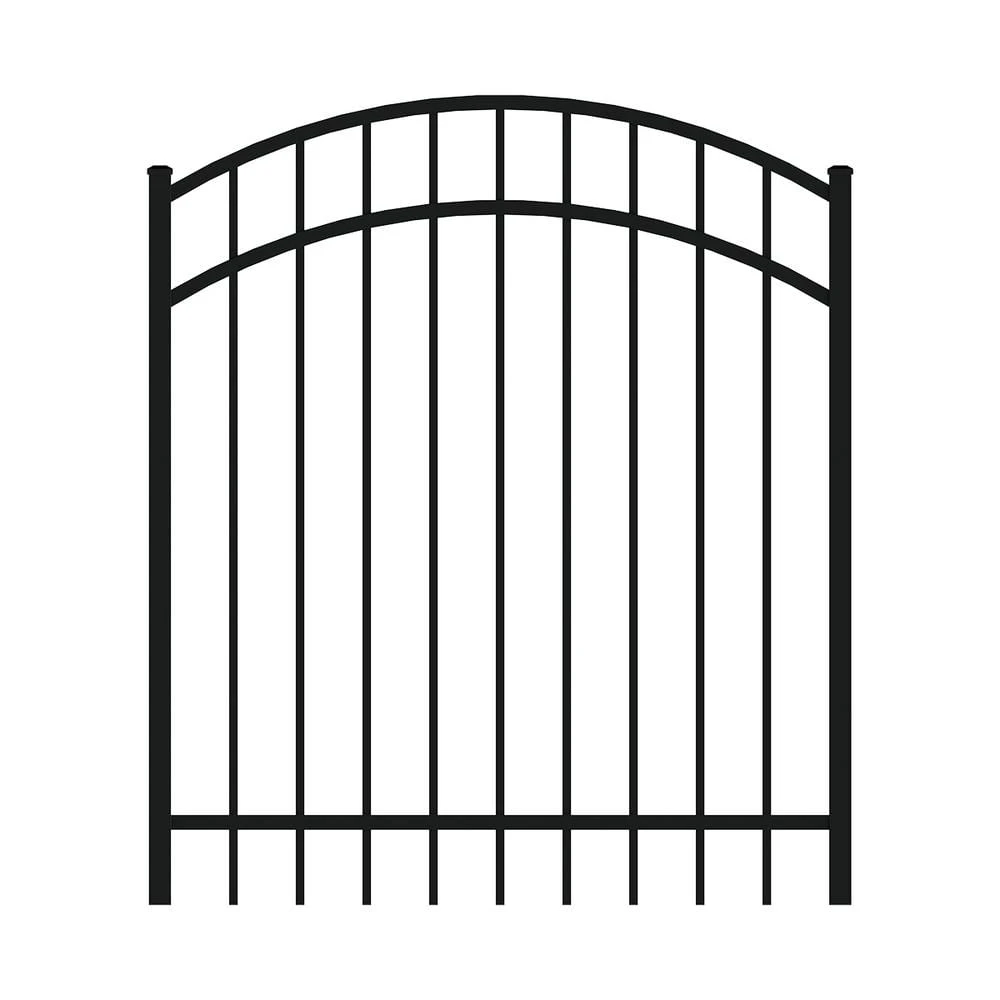 4 ft. Vinings black gate provides an elegant and attractive solution to complete your aluminum fencing system. Gate is arched on the top and has exposed pickets on the bottom, providing a more secure enclosure. Includes two (2) gate hinges, one (1) self-latching gravity latch and required mounting hardware. Compatible with the 4 ft. H Vinings fence panels. The 6 ft. H Vining end/gate post is required for installation (sold separately). Refer to the Vinings fence line for corresponding accessories and parts.