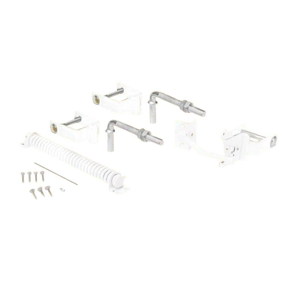 This white steel deluxe gate hardware kit includes all the components needed to secure a gate. This is a durable kit designed for long lasting beauty and performance. Installation is quick and easy.